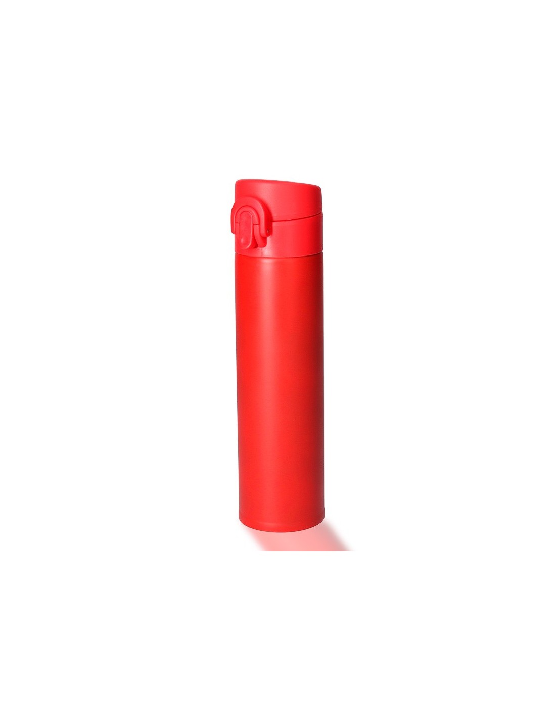 Termo en acero inoxidable de 330 ml de capacidad. Con doble cobertura para mejor y más duradera conservación de la temperatura y con sistema de apertura fácil con botón. Disponible en rojo y azul. Presentado en atractiva caja de diseño.