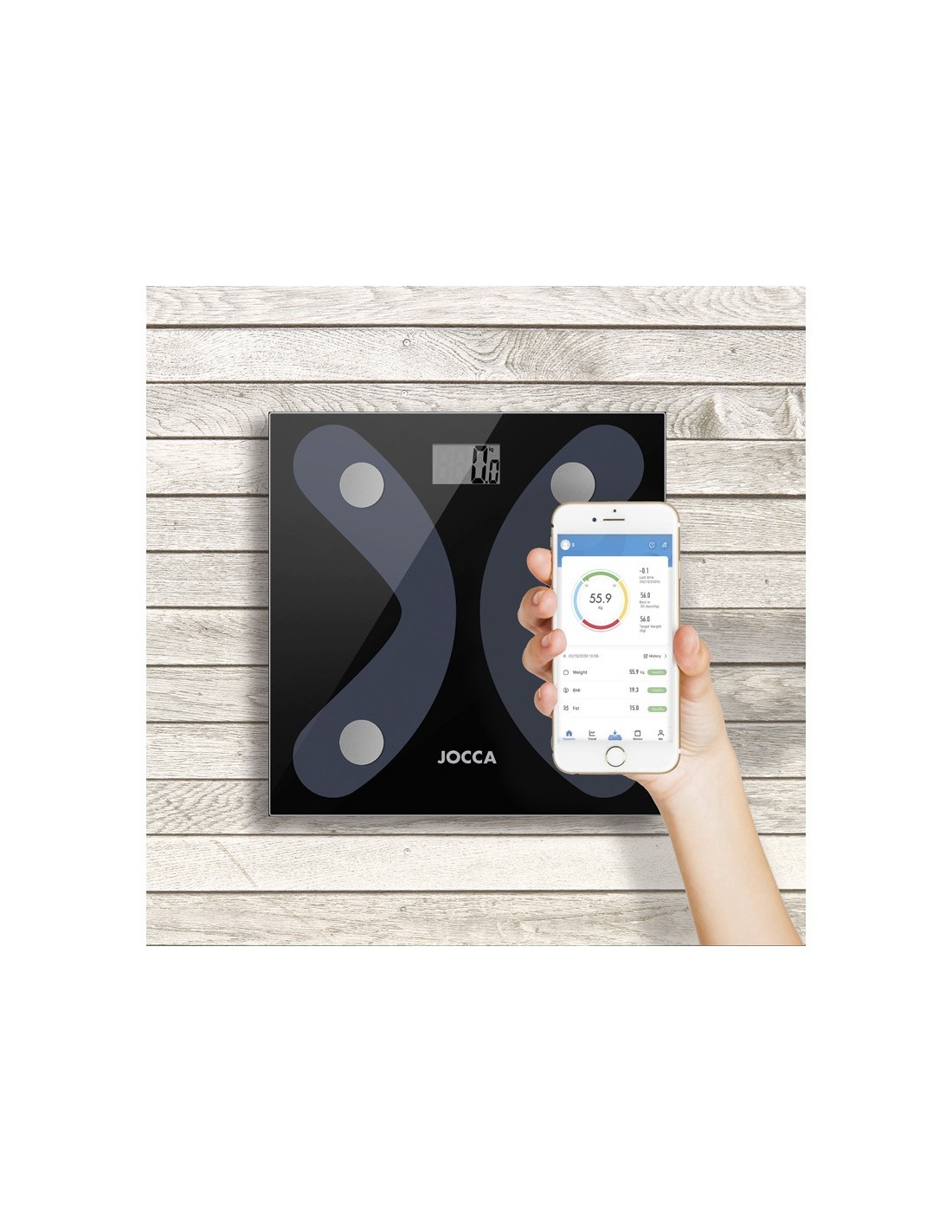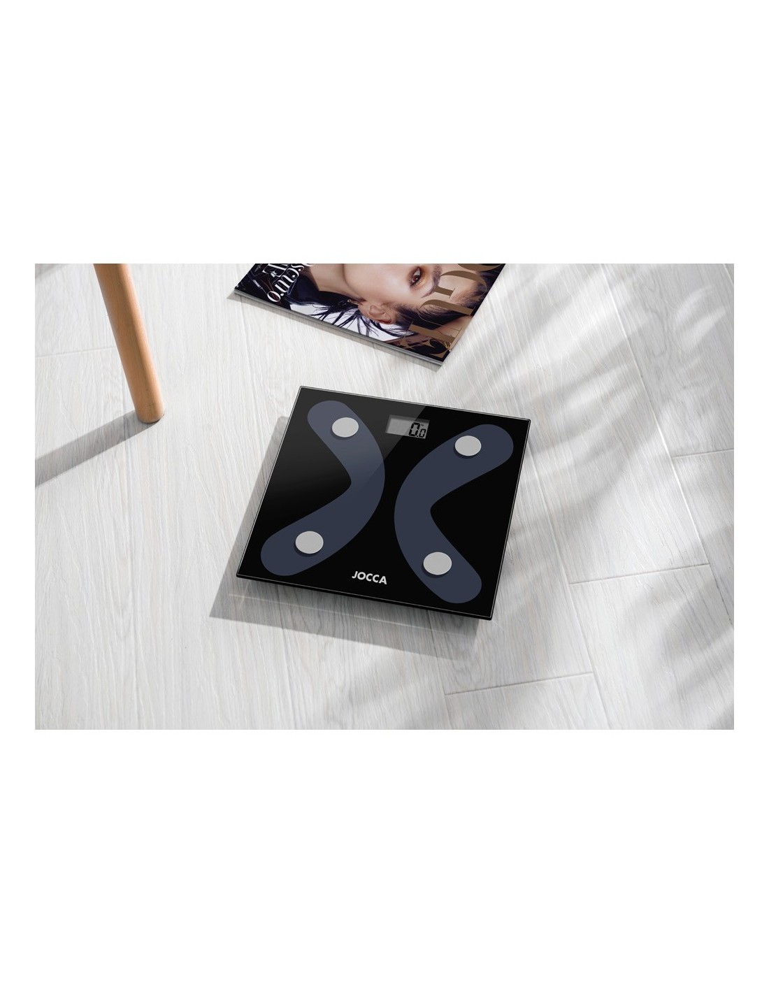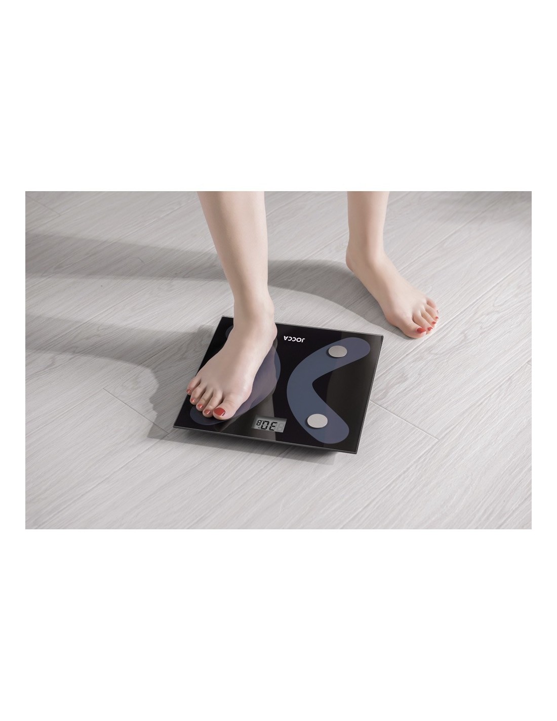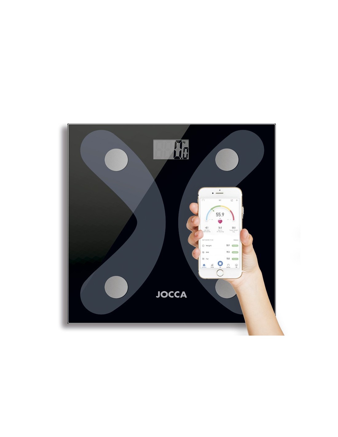 PLATO DE PESAJE DE VIDRIO TEMPLADO CON 2 GRANDES PUNTOS DE CONTACTO PARA MÁXIMA PRECISIÓN EN LA DETERMINACIÓN DEL PORCENTAJE DE GRASA CORPORAL, AGUA CORPORAL, MASA MUSCULAR, HUESO, IMC, CALORÍAS, GRASA VISCERAL Y PESO. DISPONE DE UNA APLICACIÓN CON CONECTIVIDAD BLUETOOTH 4.0 QUE ES COMPATIBLETANTO CON IOS COMO CON DISPOSITIVOS ANDROID. MEMORIA PARA HASTA 8 USUARIOS. CAPACIDAD MÁXIMA 180KG. GRADUACIÓN 0,1KG. DIMENSIONES PANTALLA LCD: 49X 33 MM. DIMENSIONES DEL PRODUCTO: 280X240X19 MM. FUNCIONA CON LAS APLICACIONES KEEP FIT U OKOK. FUNCIONA CON 2 PILAS AAA