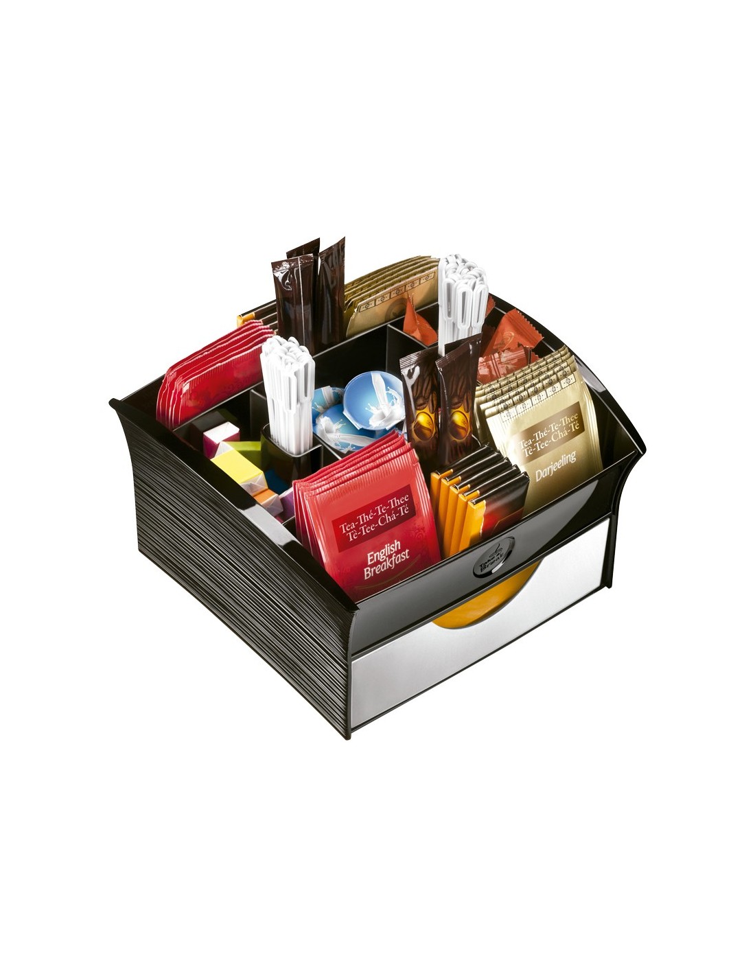 Compacto, accesible y cómodo, este módulo encontrará fácilmente su sitio en el \"espacio cocina\", junto a la cafetera o caldera. Monodosis de café, de leche, bolsitas de té, palitos, azúcar, toallitas de papel Nunca se encontraron tan bien ordenandos y accesibeles para facilitarle la preparación de sus bebidas calientes. Los tiradores en media luna facilitan la apertura de los cajones. Con sistema antivuelco, los cajones pueden por lo tanto sacarse del módulo. Las múltiples combinaciones posibles permiten concebir el módulo ideal para satisfacer sus necesidades. Lleva patines antideslizamiento incluidos.