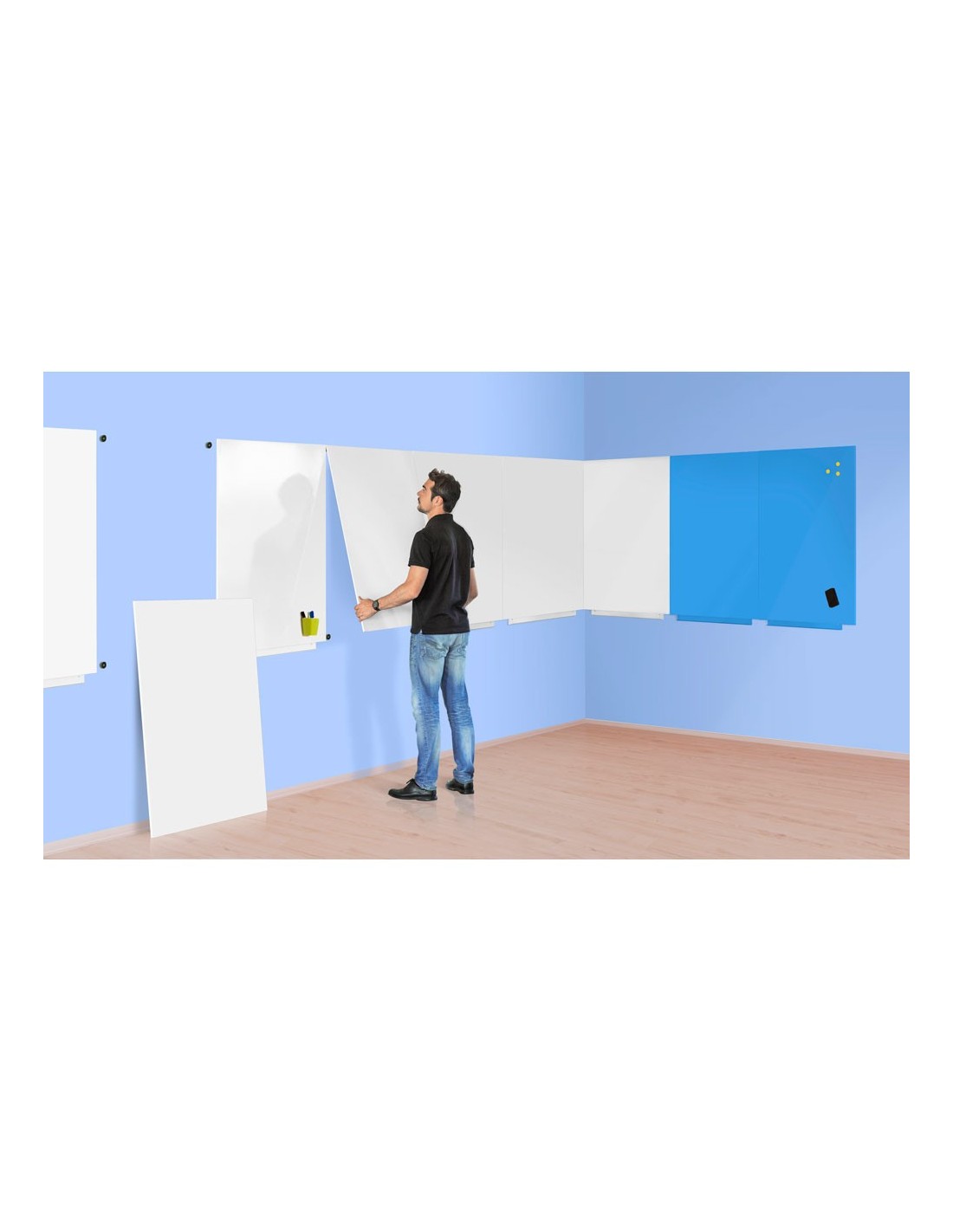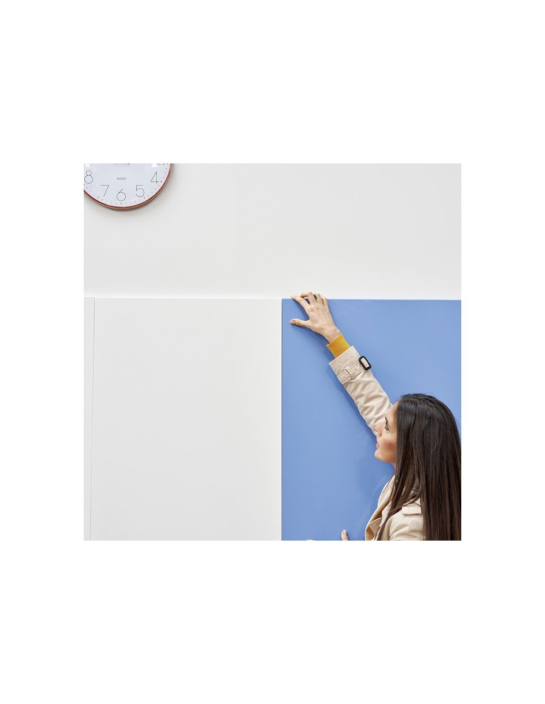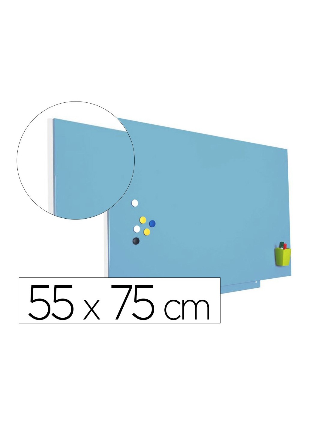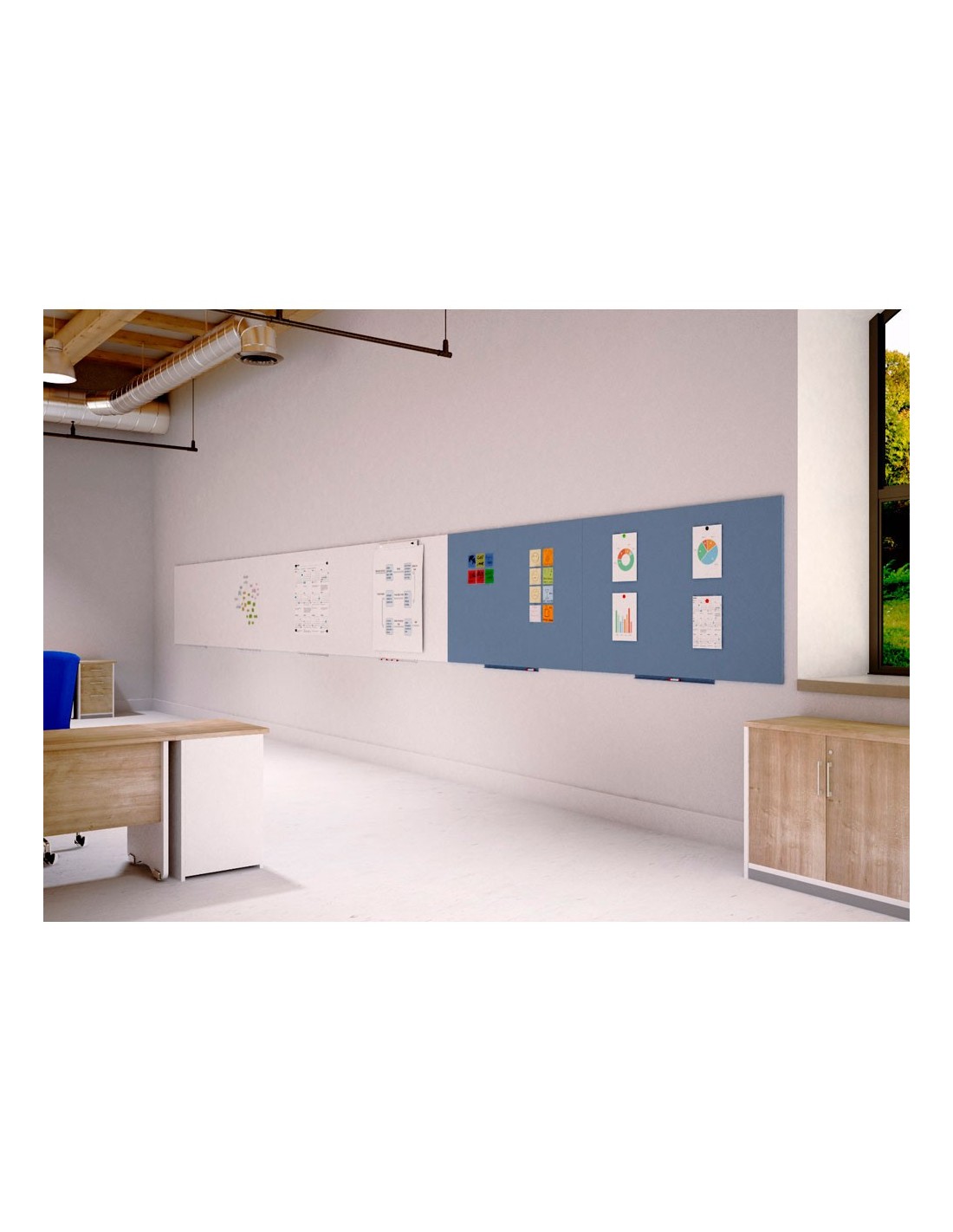 Pizarra modular y multifuncional, que gracias a su diseño moderno sin marco y con fijación magnética, permite colocarlas en vertical y horizontal haciendo posibles infinitas composiciones, desde una unidad hasta cubrir unapared, creciendo según sus necesidades. Además, sus acabados y complement os aumentan su funcionalidad con múltiples usos. Ordena las tareas por colores, personaliza los departamentos de tu empresa, mejora la visualizaciónde la información, etc. Los diferentes acabados totalmente compatibles co n los rotuladores de borrado en seco combinan perfectamente con todo tipo de entornos y además darán un toque moderno y fresco a tu oficina. Medidas: 55x75 cm. Color azul.