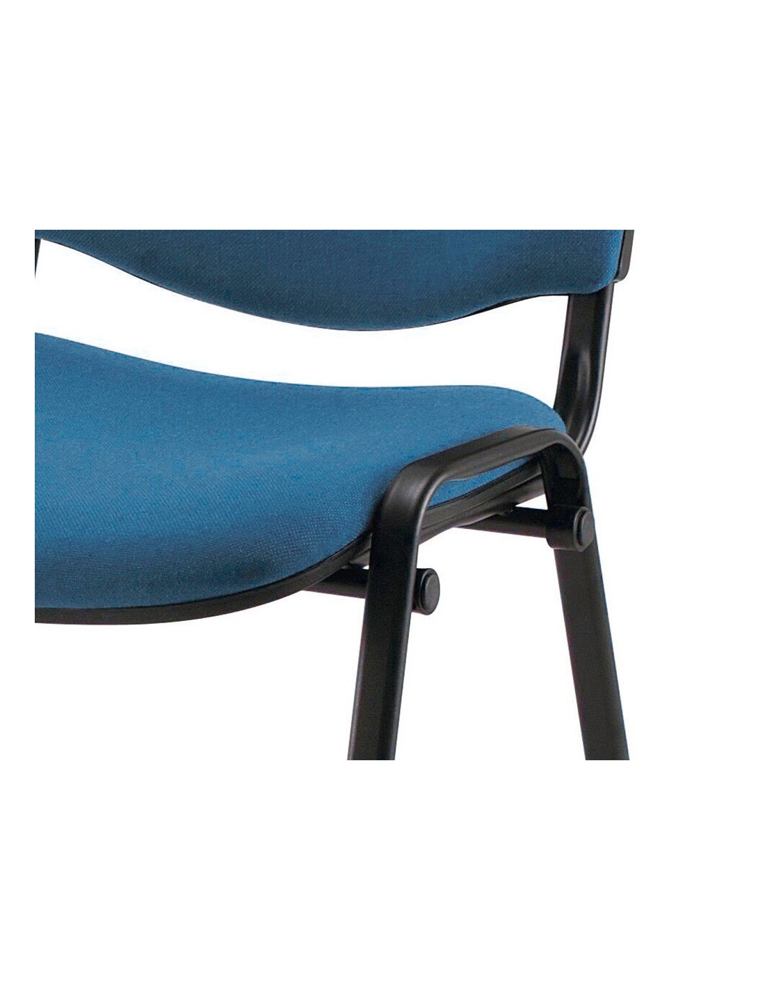 Silla confidente apilable de cuatro patas. Respaldo y asiento: tapizado en malla de gran resistencia. Base: metálica y con cuatro patas con 4 tapones para evitar roces. Altura de la silla: 91 cm. Altura del asiento: 42 cm. Ancho del asiento: 46 cm. Profundidad del asiento: 44 cm. Altura del respaldo: 33 cm. Horas de uso: 4 / 5 horas. Peso de la silla / peso máximo soportado: 5,3 kg / 100 kg.