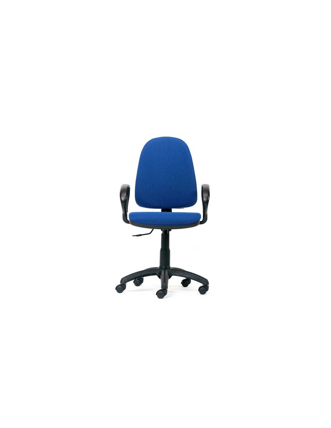 Silla giratoria regulable en altura. Asiento y respaldo: tapizados en tela de alta resistencia sobre espuma inyectada. Pistón: de gas para regulación de altura. Base: polipropileno negro con ruedas. Altura de la silla: 100-113 cm. Altura del respaldo: 49 cm. Altura del asiento: 47-60 cm. Ancho del asiento: 47 cm. Profundidad del asiento: 46 cm. Brazos: plástico. Ruedas: ruedas de nylon de 5 cm de Ø de rodadura interna con eje de acero. Horas de uso: 8 horas. Peso de la silla / peso máximo soportado: 11 kg / 125 kg. Cumple normativa UNE-EN 1335-1/-2