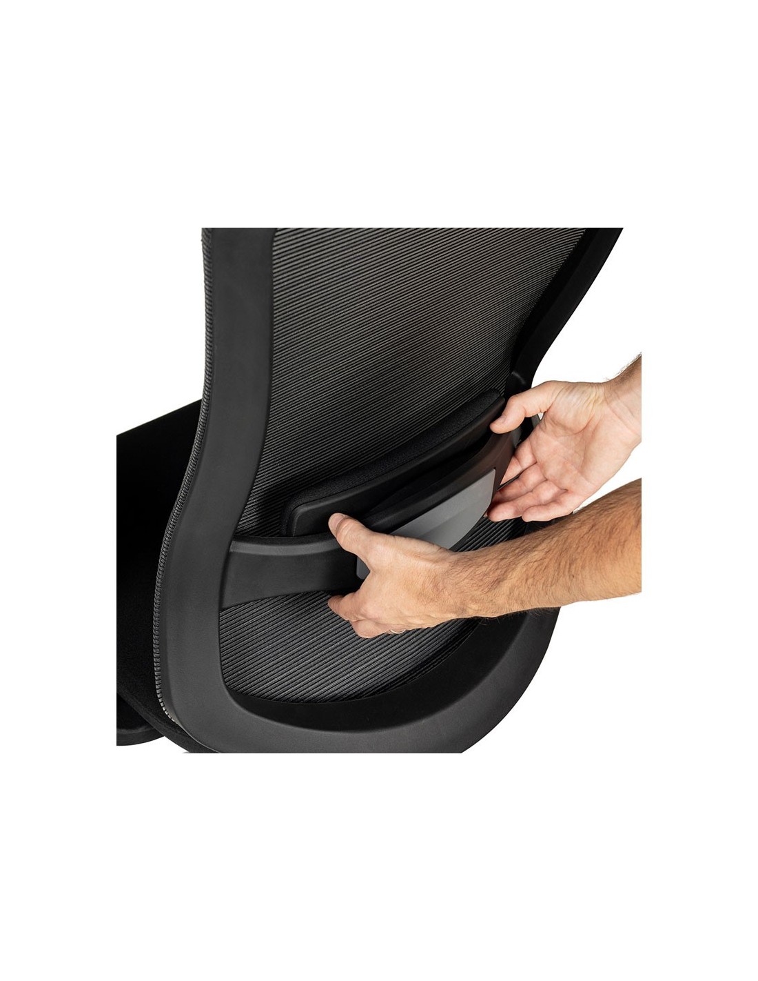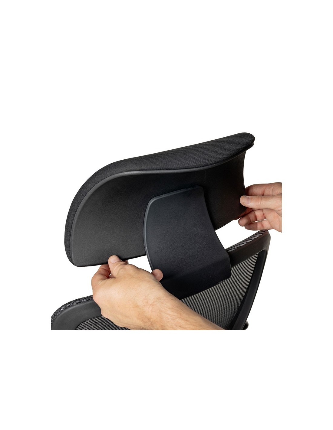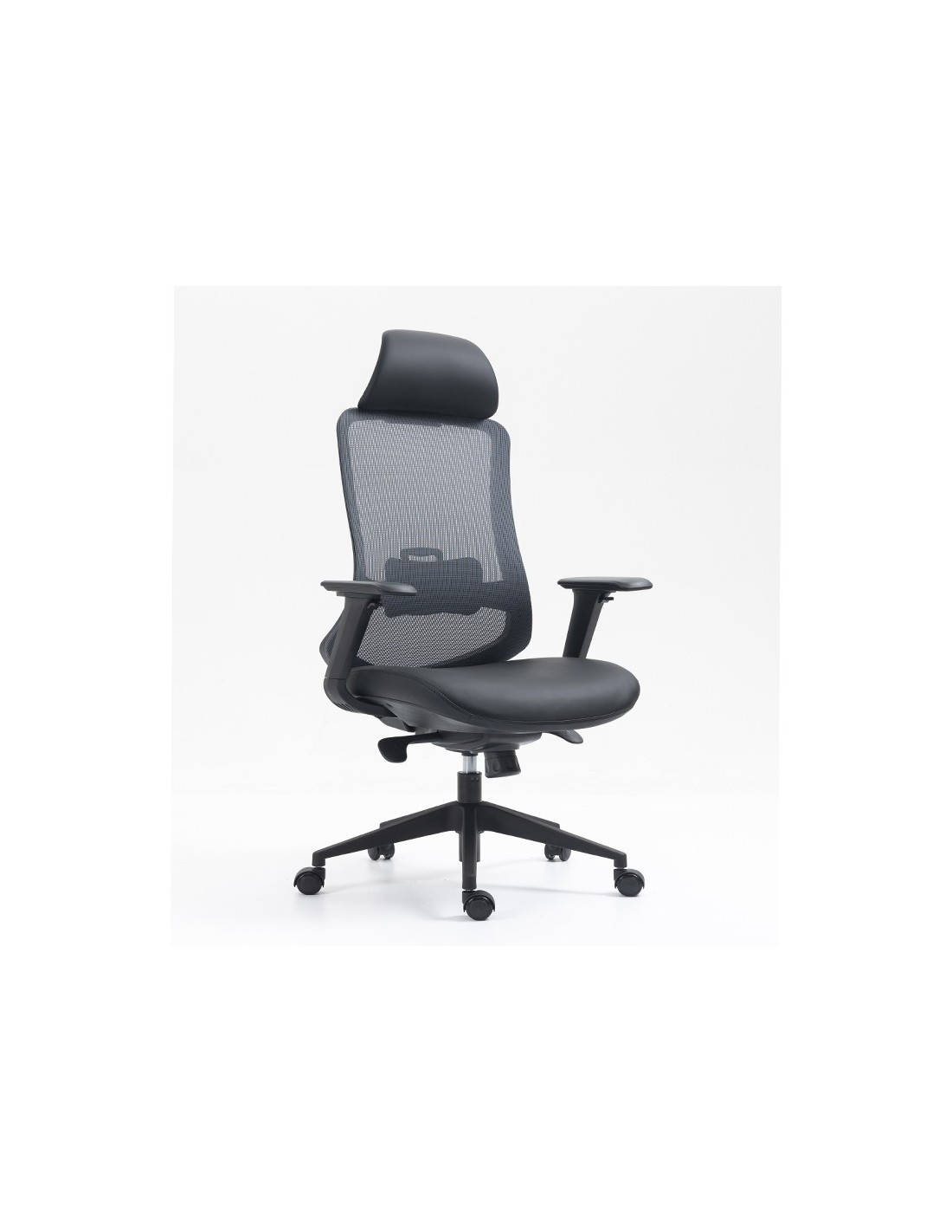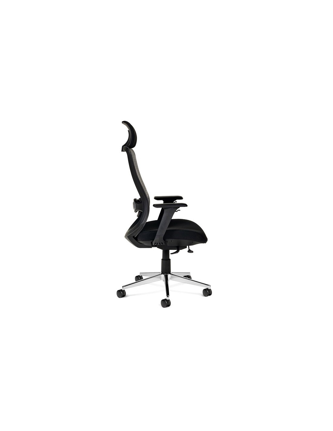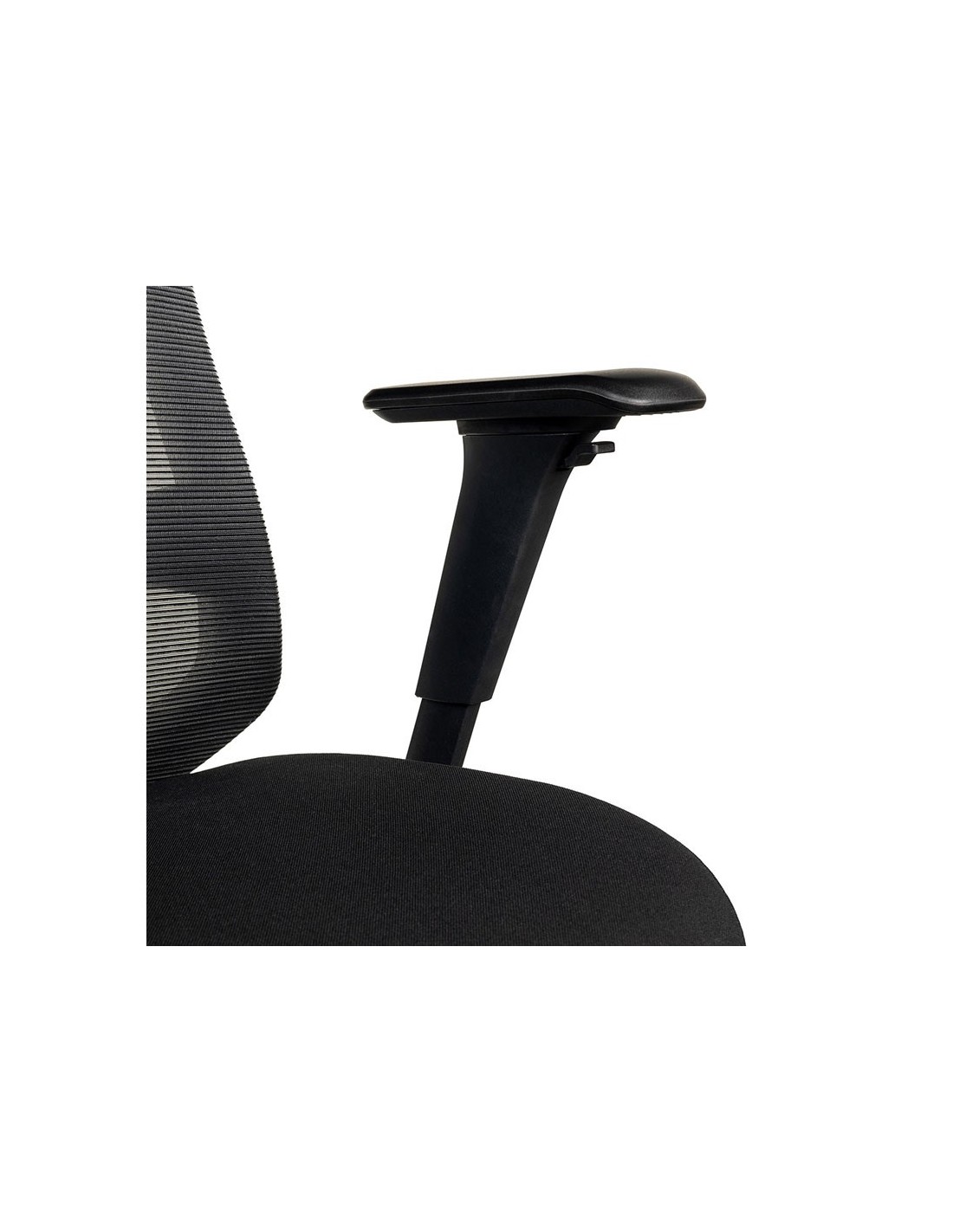 Silla de oficina prémium diseñada para uso 24/7. Reposacabezas ajustable para un mejor soporte del cuello. Respaldo de malla resistente. Asiento tapizado en tela ignífuga sobre interior de espuma inyectada con mecanismo sincro y sistema de regulación de la profundidad. Incorpora soporte lumbar ajustable. Base: de aluminio inyectado. Pistón: de gas para regulación de altura. Brazos: 4D con funda exterior blanda. Altura de la silla: 124,5 cm. Altura del respaldo: 68 cm. Altura del asiento: 47-57 cm. Ancho del asiento: 51 cm. Profundidad del asiento: 51 cm. Ruedas: nylon silenciosas de 5 cm Ø con cubierta exterior de poliuretano. Horas de uso: 8 horas. Peso de la silla /peso máximo soportado: 16,7 kg / 125 kg. Cumple normativa UNE-EN 1335-1/-2