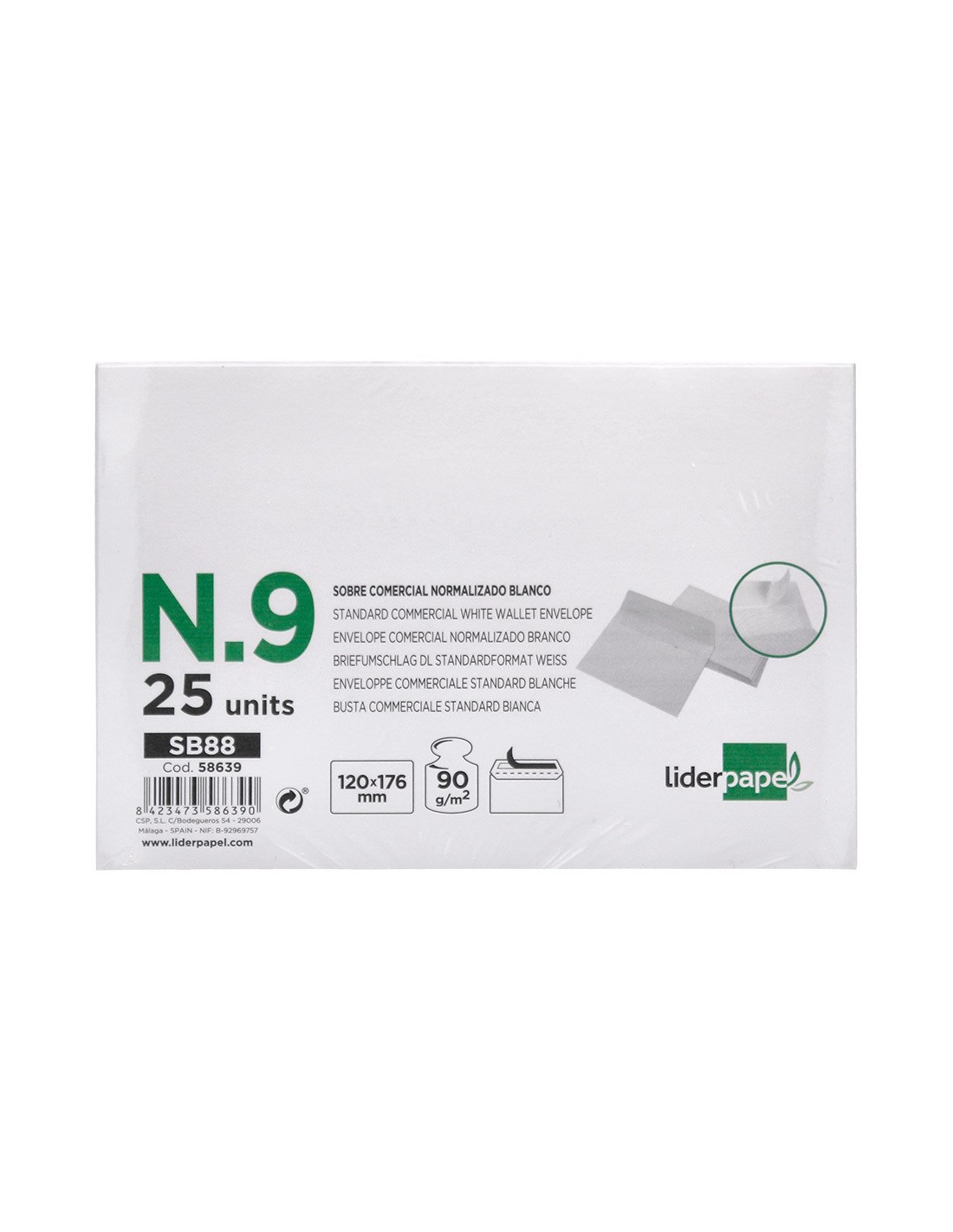Sobre Liderpapel comercial normalizado offset blanco 90g tira silicona caja de 10 unidades.