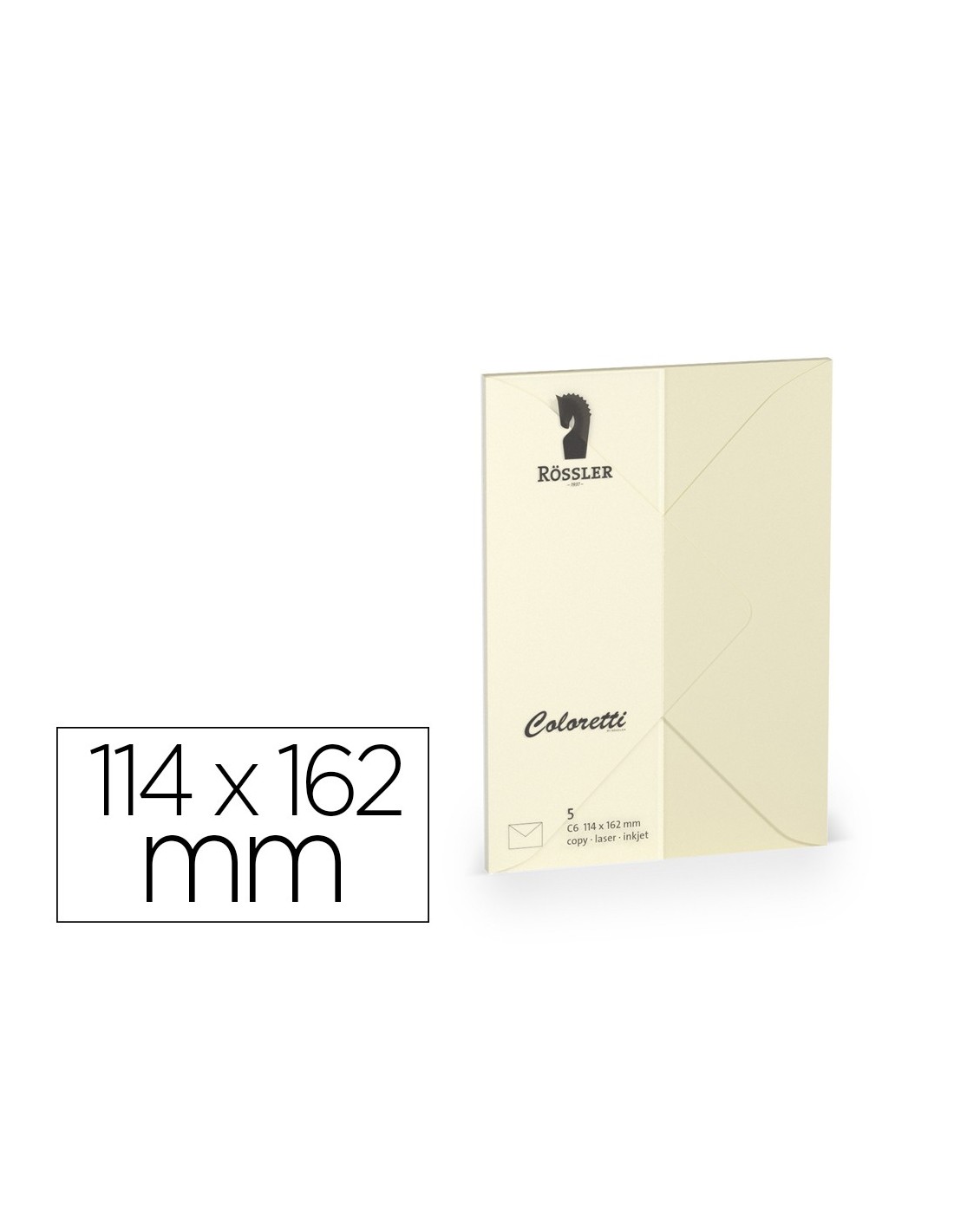 Compatible con copia, láser e inyección de tinta. Son perfectos para invitaciones y ocasiones festivas. Medidas: 114 x 162 mm. Color crema. 80 gr/m². Pack de 5 unidades.