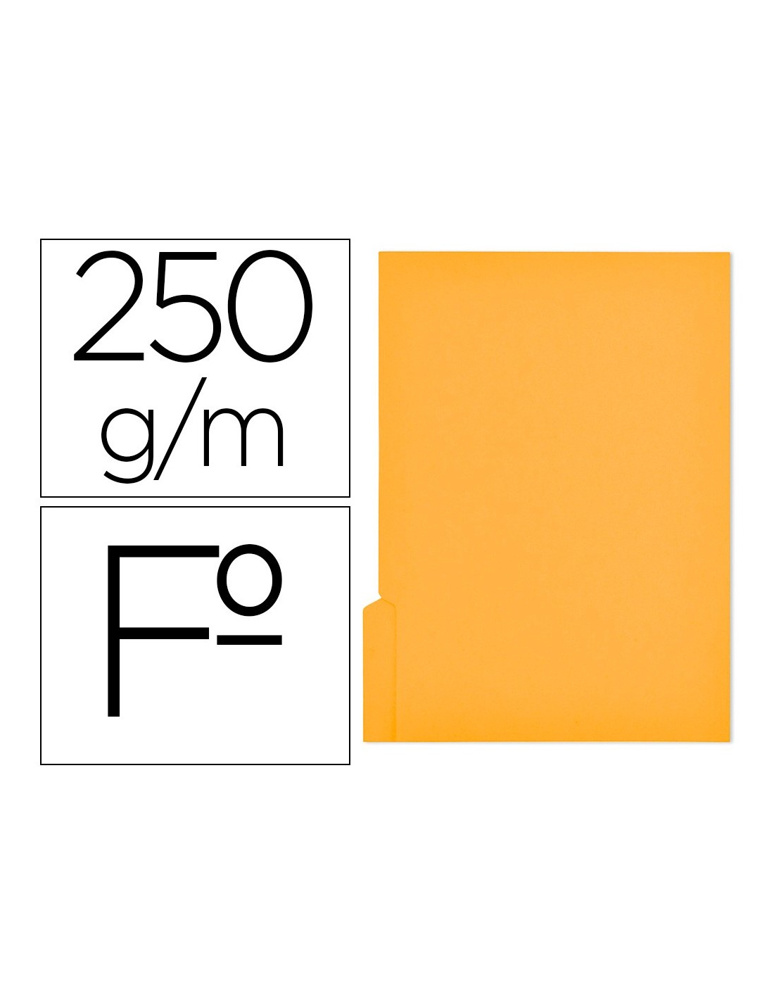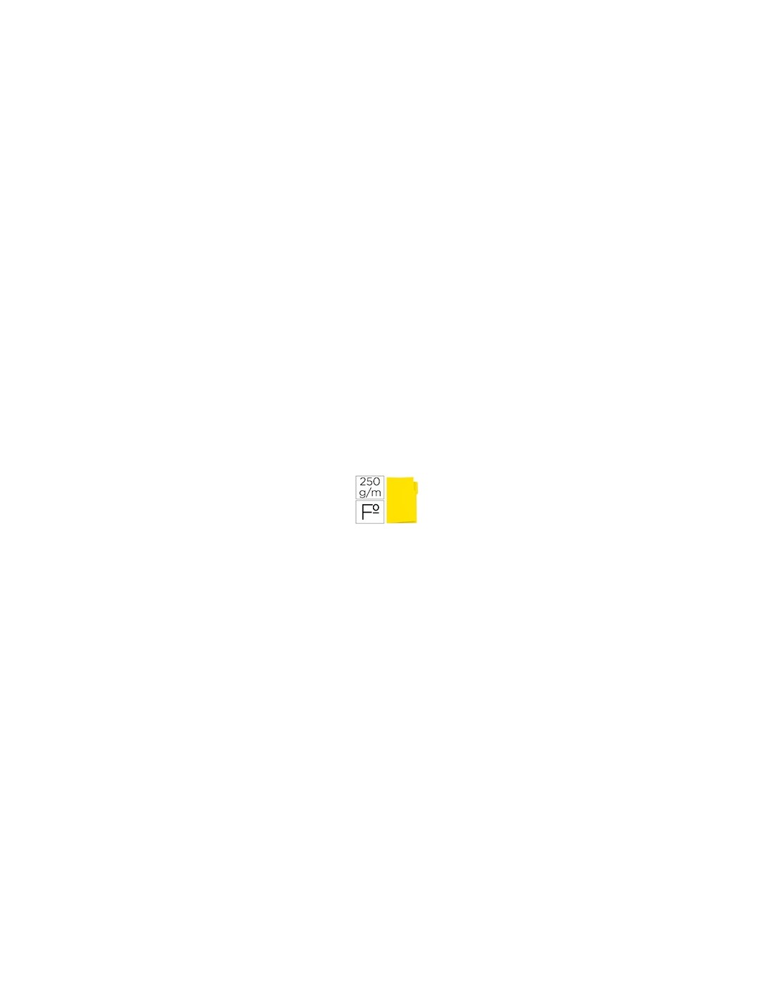 Subcarpeta con pestaña, ideal para subdividir información en carpetas colgantes. Pestaña escribible. Hendidos para incorporar fástener. Resistente para uso intensivo. Fabricada en cartulina de 250 g/m². Capacidad máxima: 100 hojas. Color amarillo.