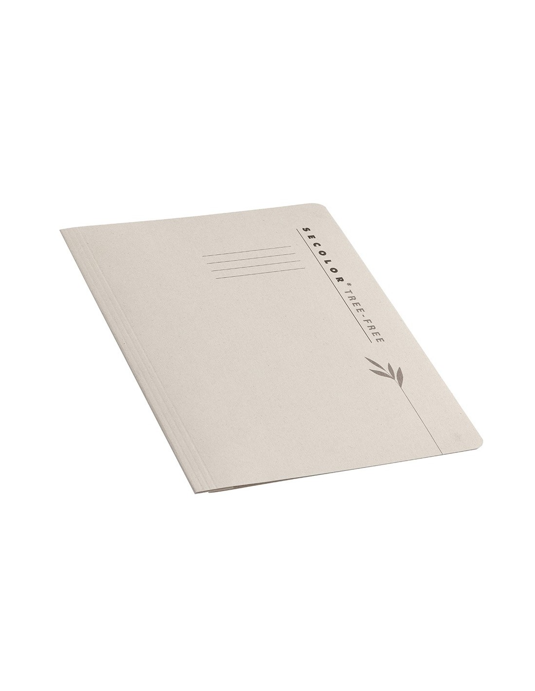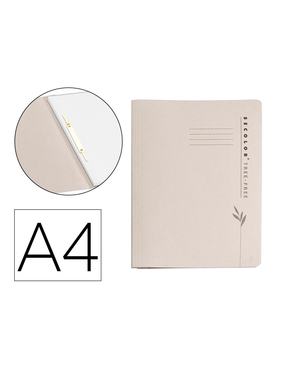Subcarpeta de cartulina ecológica. Fabricadas en cartulina producida mediante la reutilización de los desechos agrícolas (hojas y tallos). Con fasterner. Gramaje 226 g/m². Formato Din A4. Color crema.