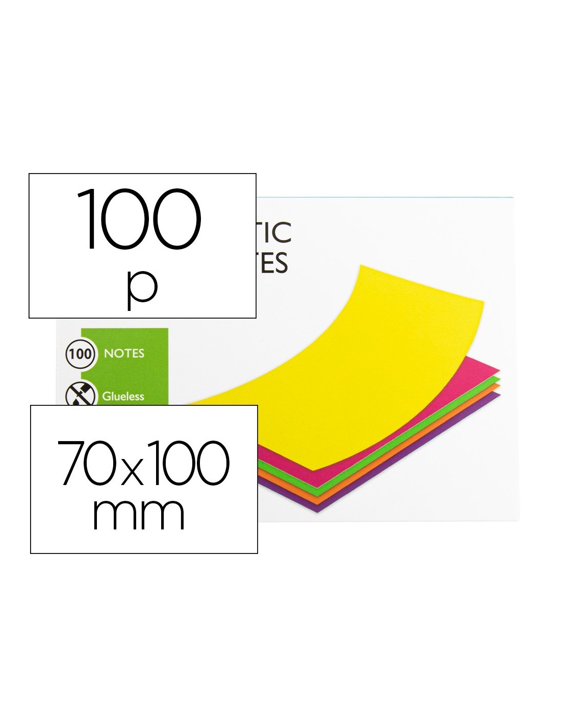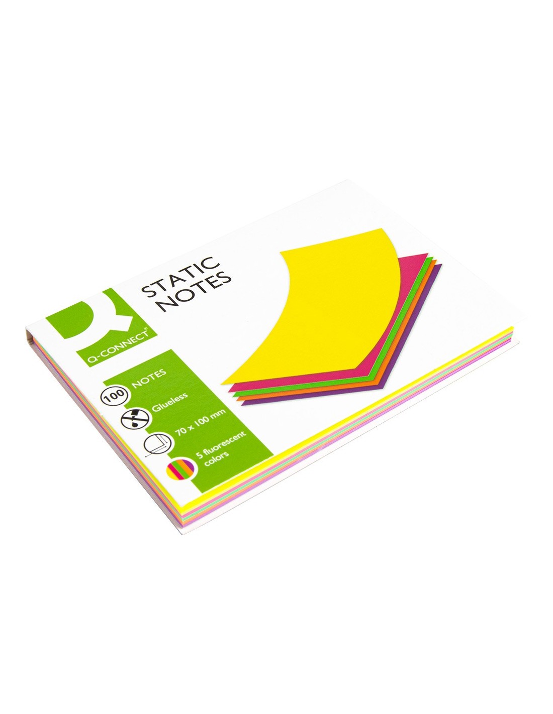 Perfectas para anotar datos de utilidad. Sin pegamento, se adhieren por energía electrostática sobre cualquier superficie (pared, ventanas, pizarras blancas ) Simples y sencillas, de diferentes colores para visualizar las ideas. 5 colores flúor: amarillo, lila, naranja, rosa y verde. El bloc de 100 hojas.