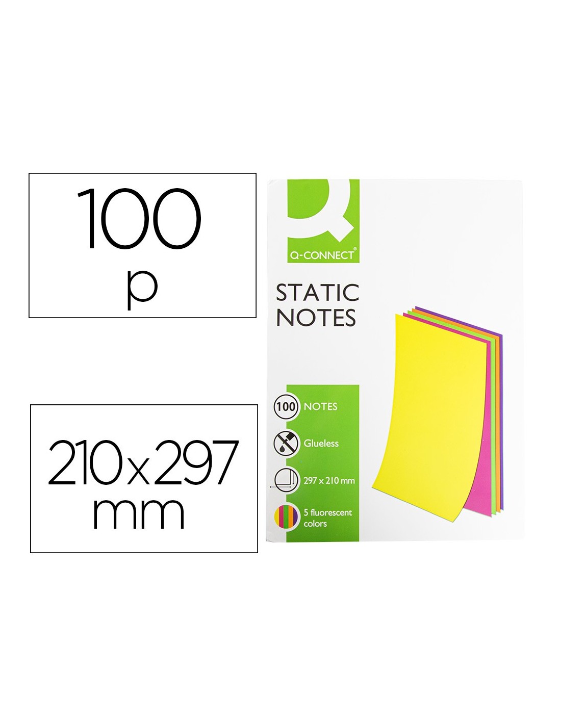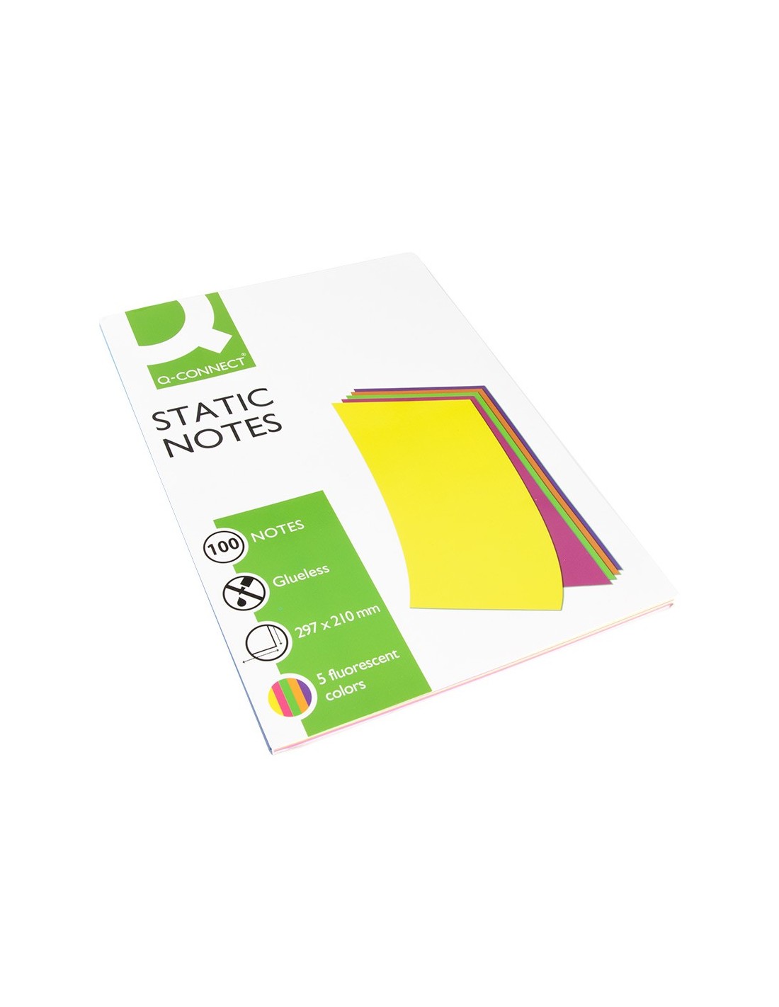 Perfectas para anotar datos de utilidad. Sin pegamento, se adhieren por energía electrostática sobre cualquier superficie (pared, ventanas, pizarras blancas ) Simples y sencillas, de diferentes colores para visualizar las ideas. 5 colores flúor: amarillo, lila, naranja, rosa y verde. El bloc de 100 hojas.