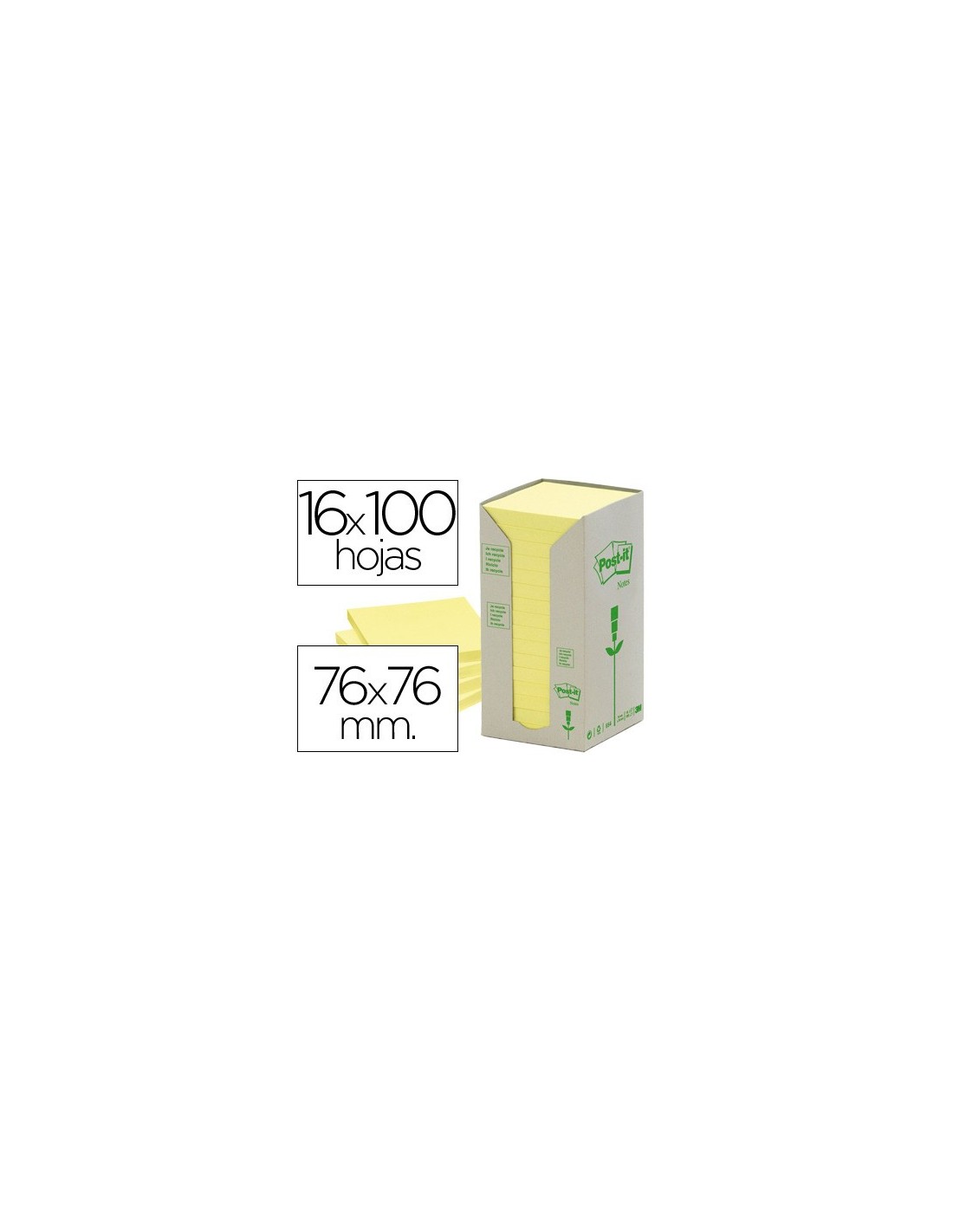 BLOC NOTAS ADH. POST-IT 76X76MM PAPEL RECICLADO 16UD. 100H. AM.