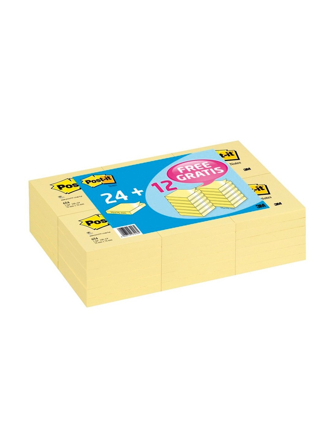BLOC DE NOTAS ADHESIVAS QUITA Y PON POST-IT 76X76 MM PACK 24+12