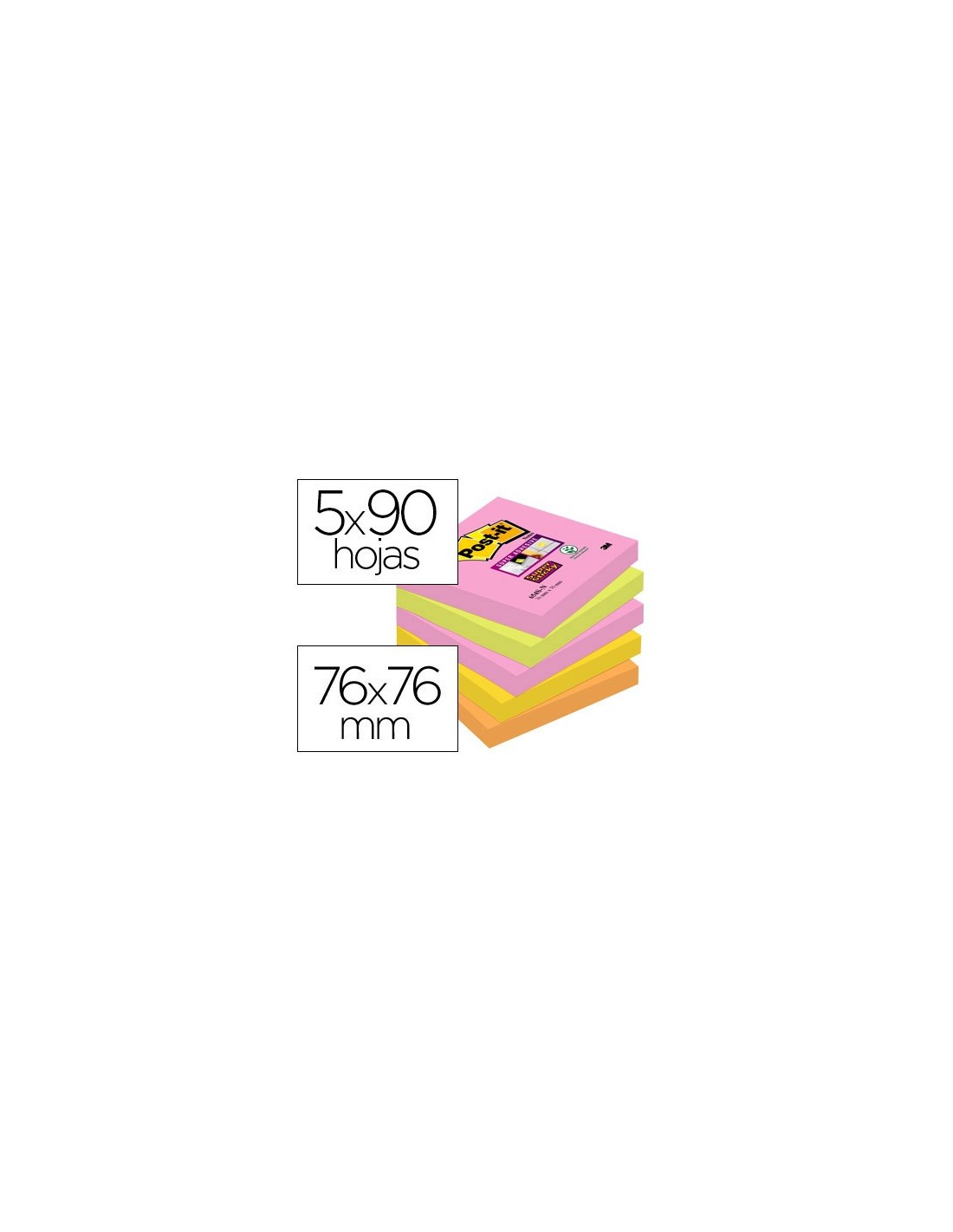 BLOC NOTAS ADH.POST-IT SUPER STICKY 76X76MM 5UD 90H. COL.SURT.