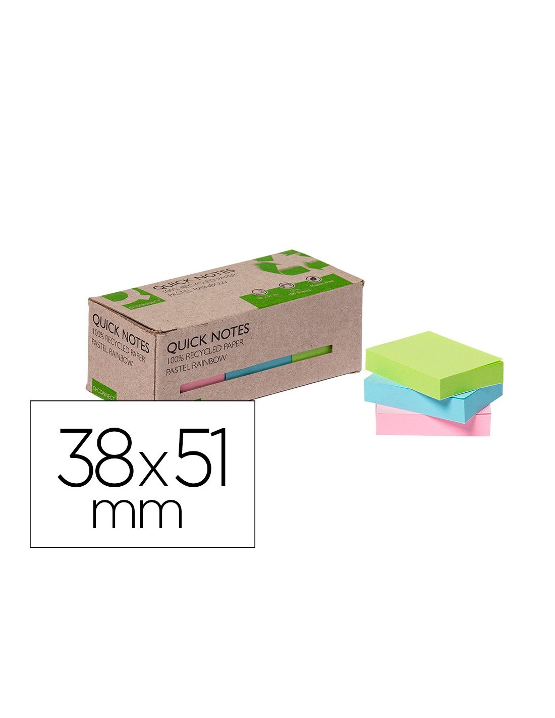 BLOC NOTAS ADH. QUITA PON Q-CON.38X51MM 100% PAPEL RECICLADO PASTELE
