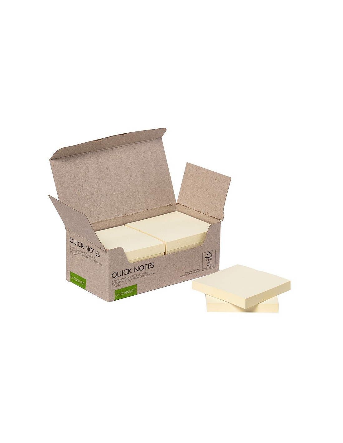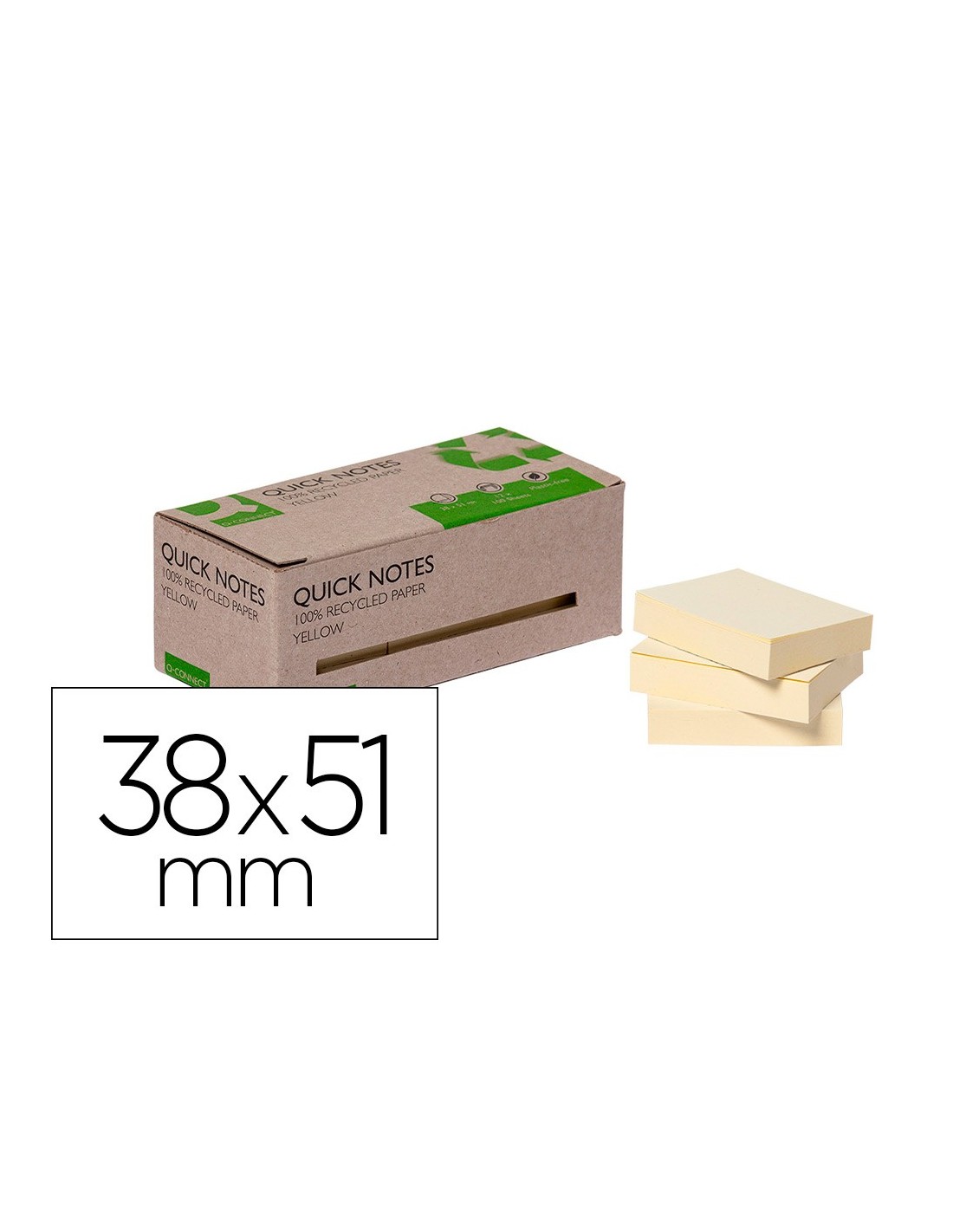 Fabricadas con papel 100% reciclado. Muy útiles para recordar información.Color amarillo. Medidas: 38 x 51 mm. Bloc de 100 hojas. Producto Ecológic o libre de plástico.