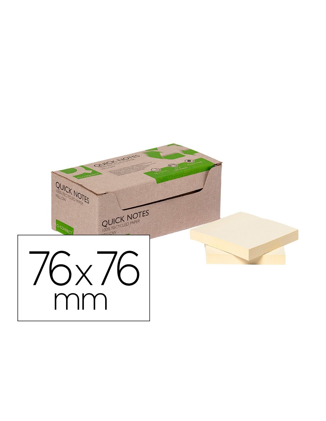 Fabricadas con papel 100% reciclado. Muy útiles para recordar información.Color amarillo. Medidas: 76 x 76 mm. Bloc de 100 hojas. Producto Ecológic o libre de plástico.