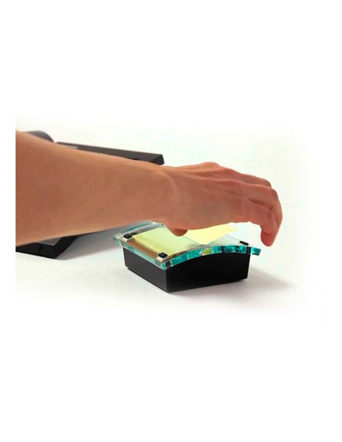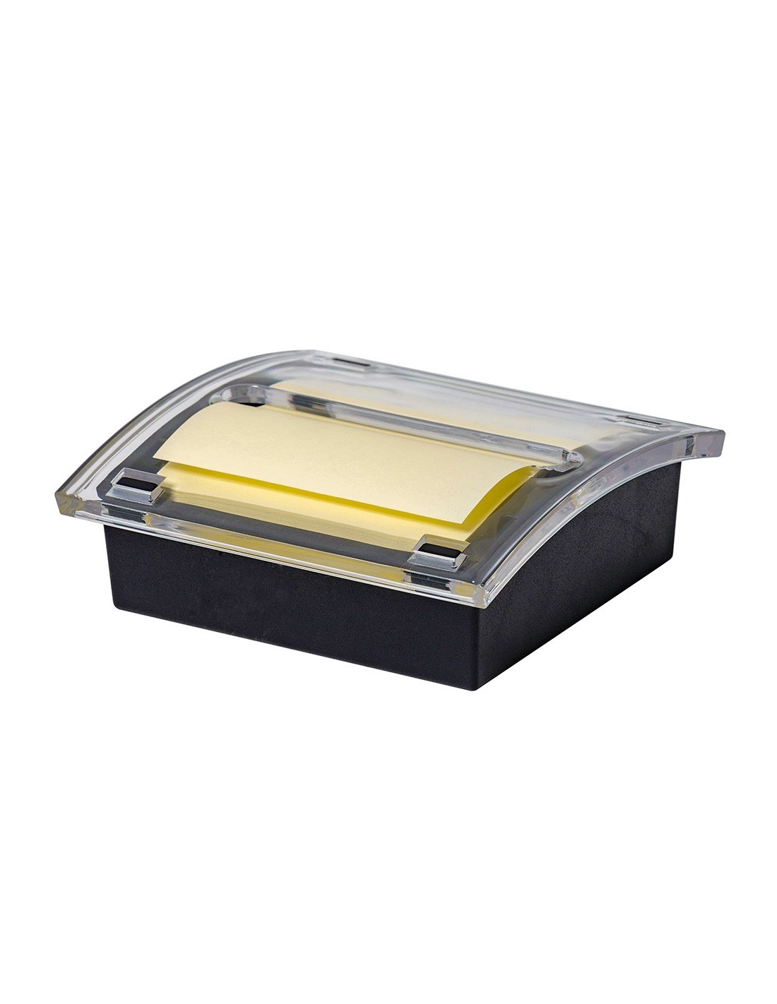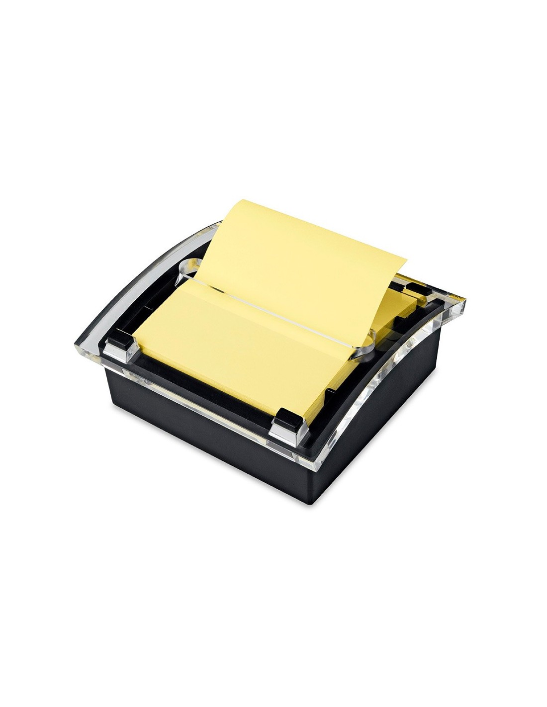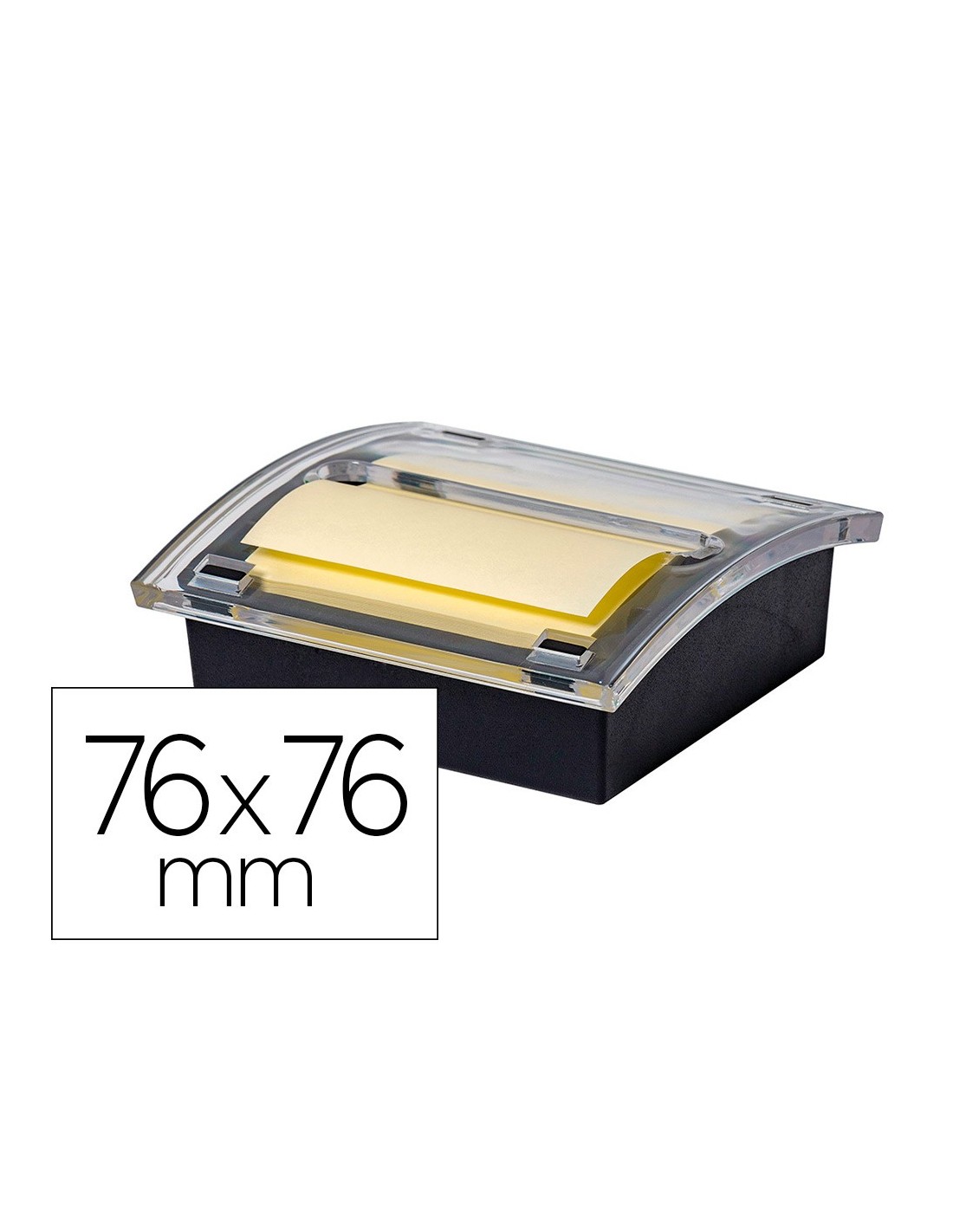 Dispensador compuesto por una base negra de ABS y una tapa dispensadora hecha de poliestireno. La base es solida y estable, para poder sacar notas del dispensador con comodidad. Incluye 1 bloc de 100 notas zig-zag de 76 x 76 mm de color amarillo (KF02161). Color negro / transparente. Compatible con los blocs de notas zip-zag de 76 x 76 mm. Medidas : 106 x 106 x 40 mm.