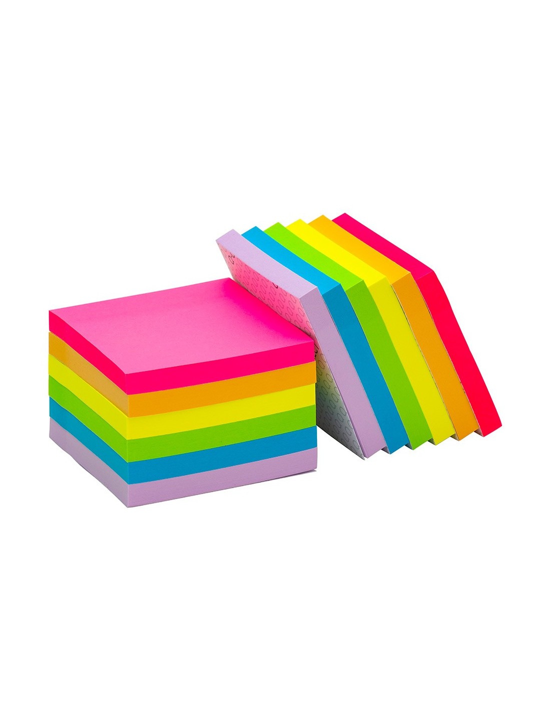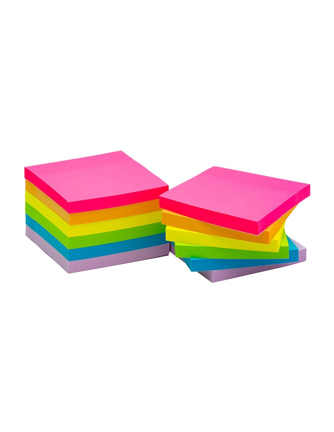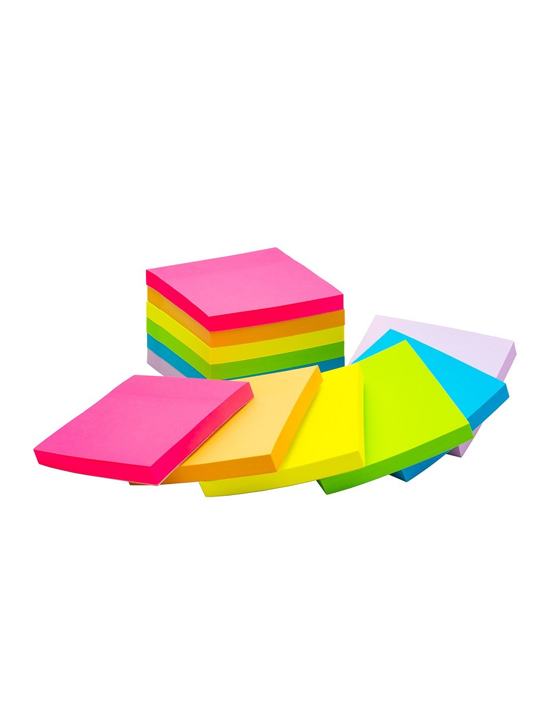 Muy útiles para recordar información. Colores pastel y fluorescentes surtidos : naranja pastel, lila, rosa fluor, naranja fluor, azul fluor y verde fluor. Papel con certificacion FSC. Medidas: 76 x 76 mm. Bloc de 100 notas.