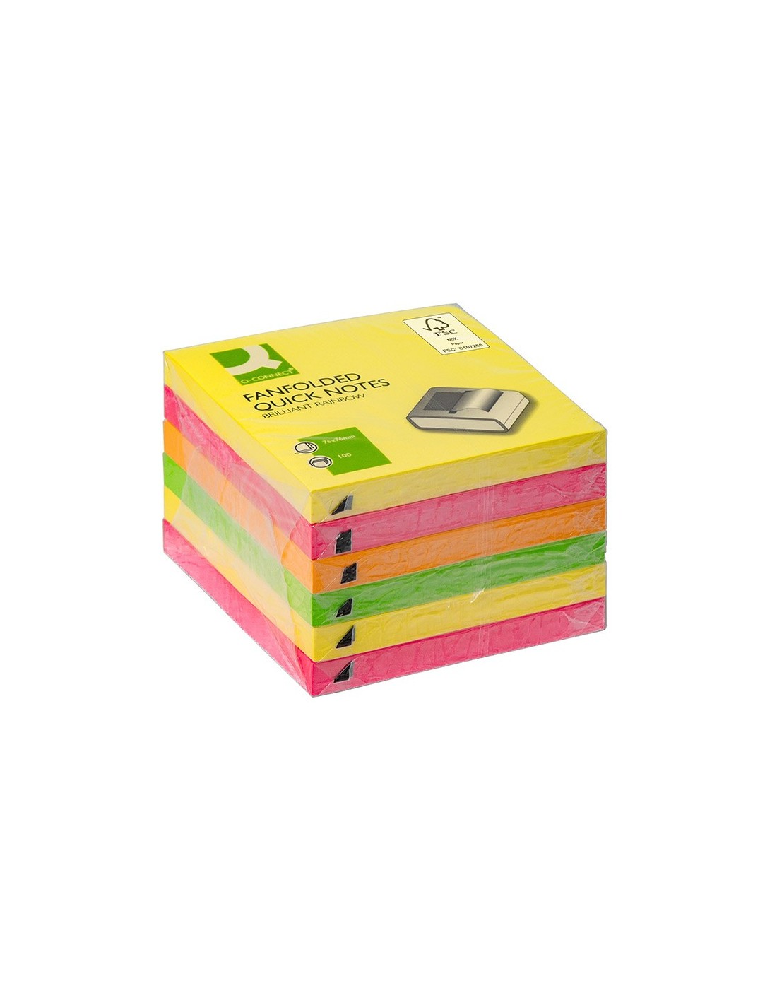 Perfectas para anotar datos de utilidad. Notas zig-zag. Colores fluorescentes neon : amarillo, naranja, rosa, verde. Medidas: 76 x 76 mm. Bloc de 100 hojas.
