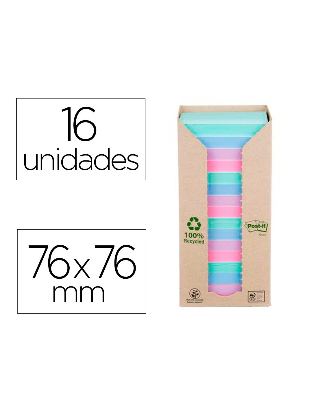 BLOC NOTAS ADH. QUITA PON POST-IT 76X76MM 100% REC TORRE 16 UD.COL.