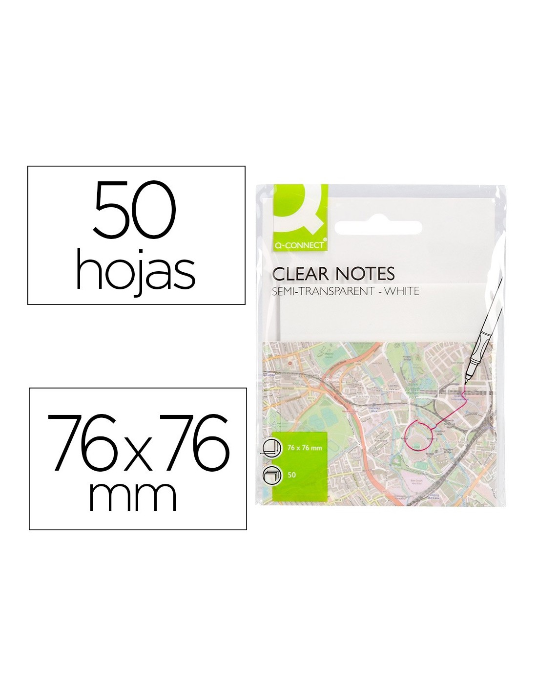 Bloc de notas adhesivas translúcidas y removibles. Permiten escribir fácilmente y hacer anotaciones con lápiz o bolígrafo sin afectar al documento. Color blanco. Medidas: 76 x 76 mm. 50 hojas