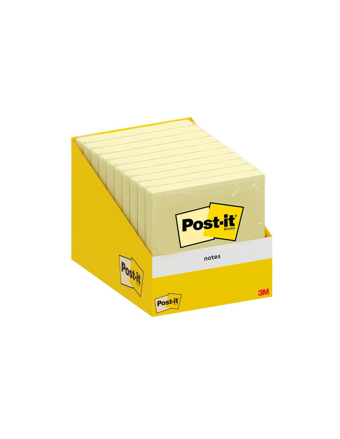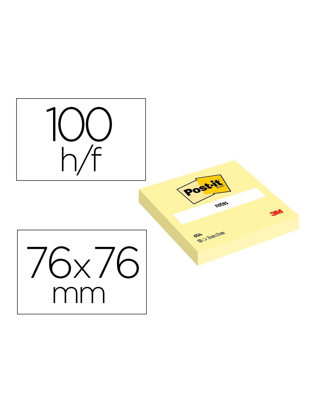 Bloc de notas adhesivas quita y pon post-it 76x76 mm con 100 hojas. Retractilados individualmente. Recomendables para escribir datos. Color amarillocanario. Las notas Post-it están elaboradas con fibras de papel con certi ficación PEFC procedentes de explotaciones sostenibles y orígenes controlados. El embalaje está hecho de cartón reciclado y puede usarse para guardar fácilmente las notas adhesivas y se puede reciclar cuando ya no se necesite.