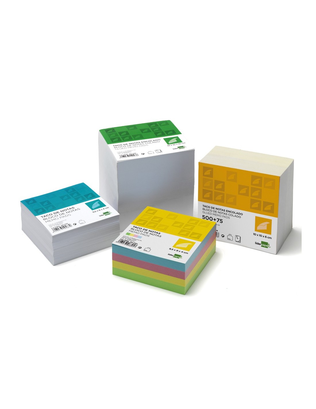 Tacos de papel. Sin encolar. Indicados para hacer anotaciones. Papel de 80 g/m². Medidas: 95 x 90 x 40 mm. El taco de 400 hojas.