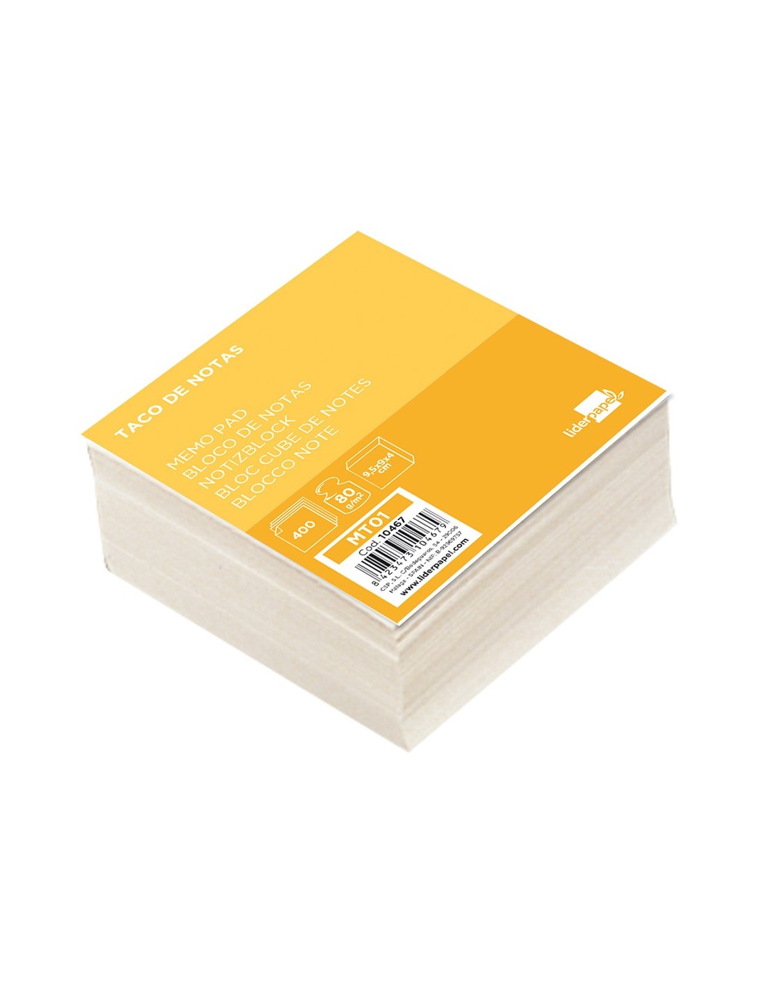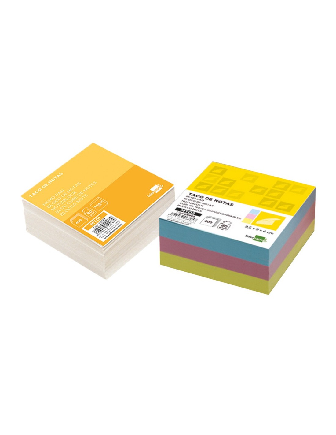 Tacos de papel. Sin encolar. Indicados para hacer anotaciones. Papel de 80 g/m². Medidas: 95 x 90 x 40 mm. El taco de 400 hojas.