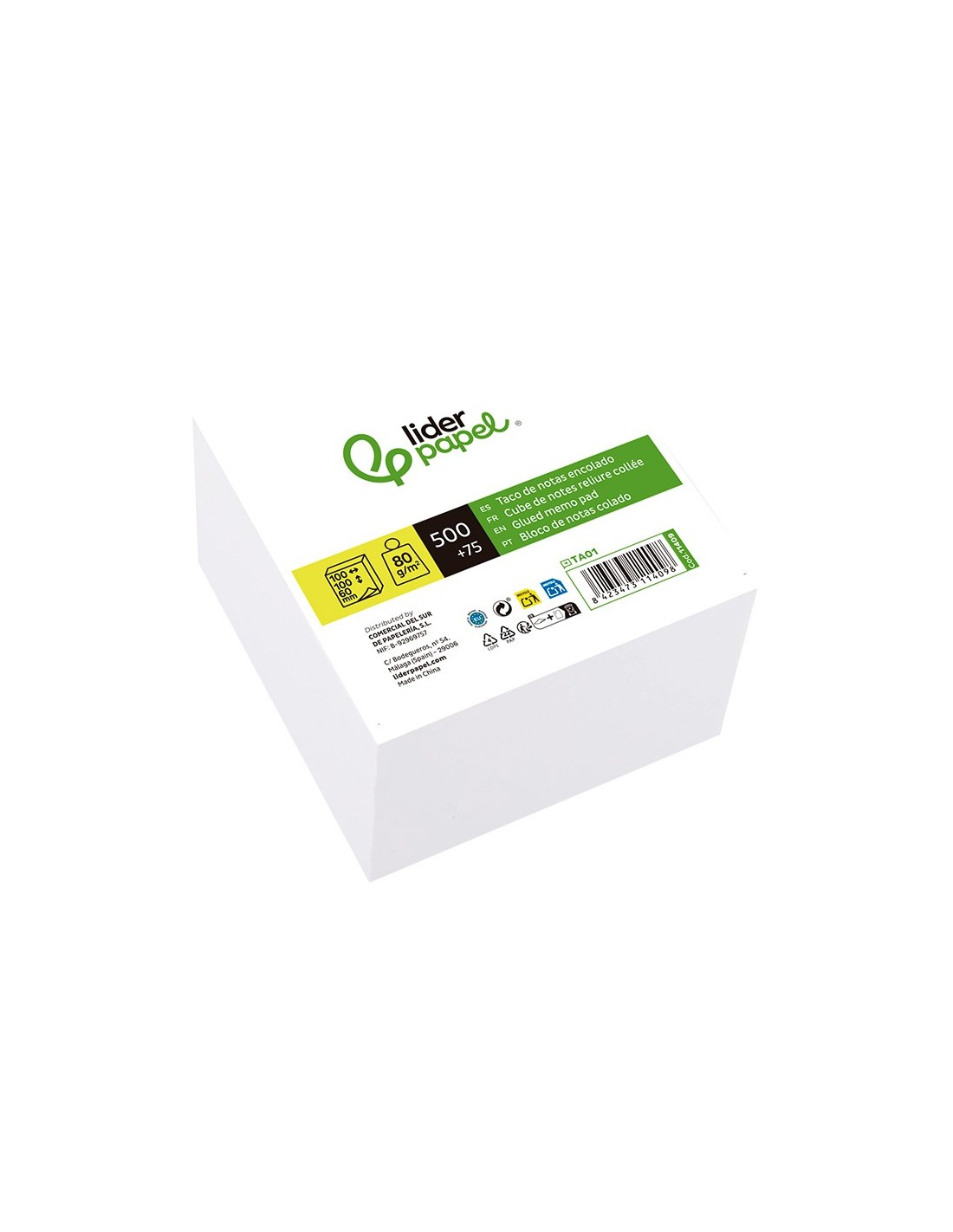 TACO PAPEL ENCOLADO LIDERPAPELBLANCO 10X10X6 CM 575H
