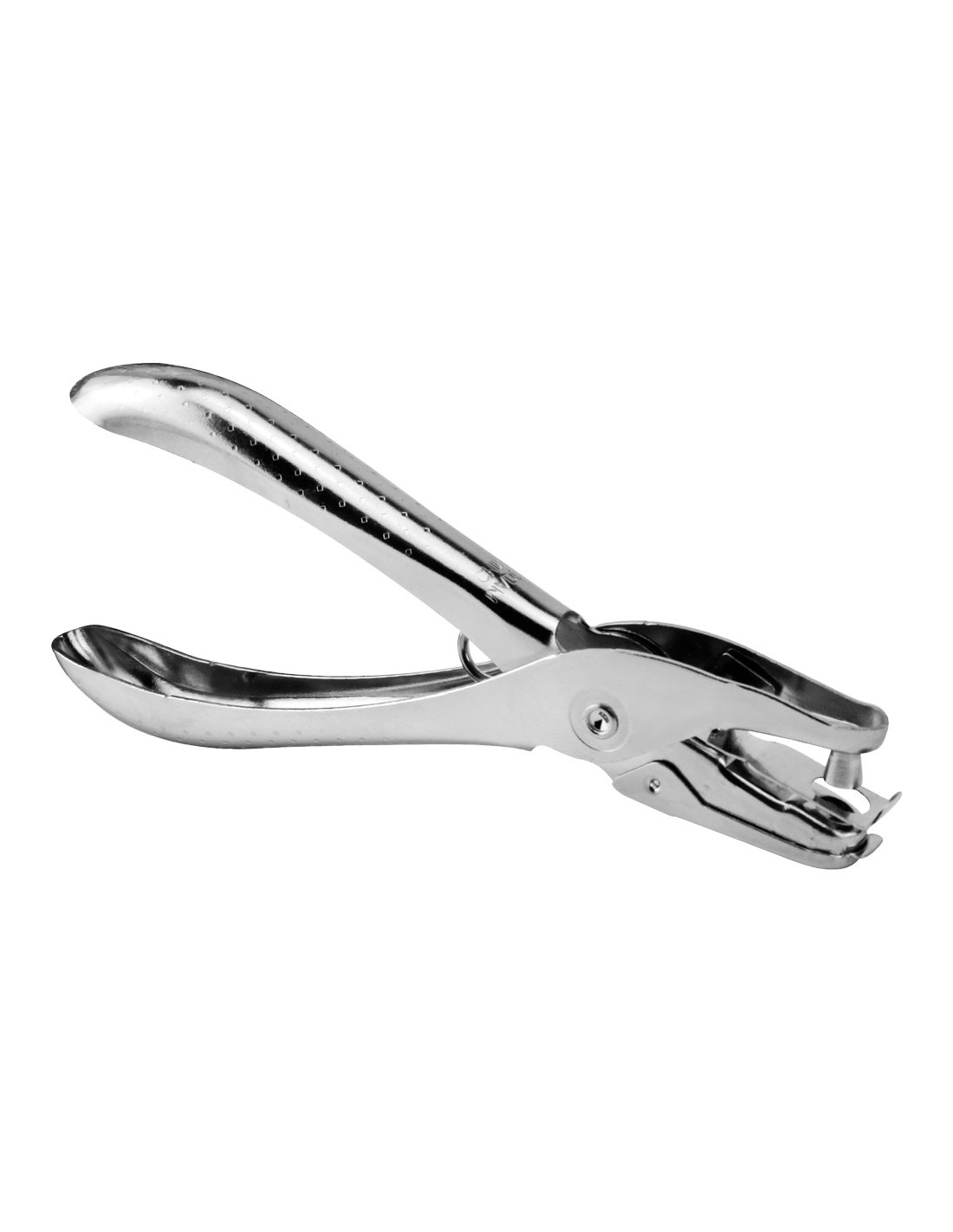 Perforador de un taladro con cuerpo metálico y punzón de metal. Muy práctico. Forma ergonómica para perforar hasta 6 hojas con comodidad y precisión.