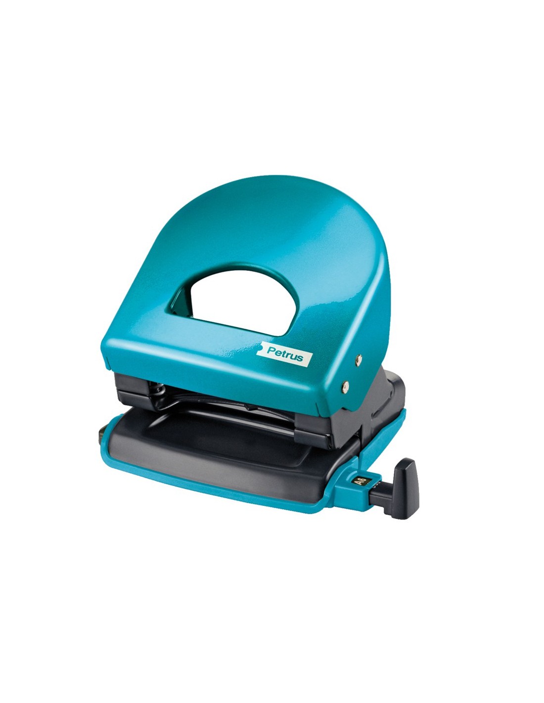 Taladro de metal en colores actuales para uso cotidiano. Con base antideslizante de plástico. Robusto y fiable. Zona de sujeción patentada y punzones afiladísimos que reducen el esfuerzo. Regleta tope para alinear el papel con formatos impresos y ventana para mejor visibilidad y fijación. Distancia entre punzones: 80 mm. Capacidad de perforación: 3 mm/ 30 hojas. Medidas de la base: 135 x 104 mm.