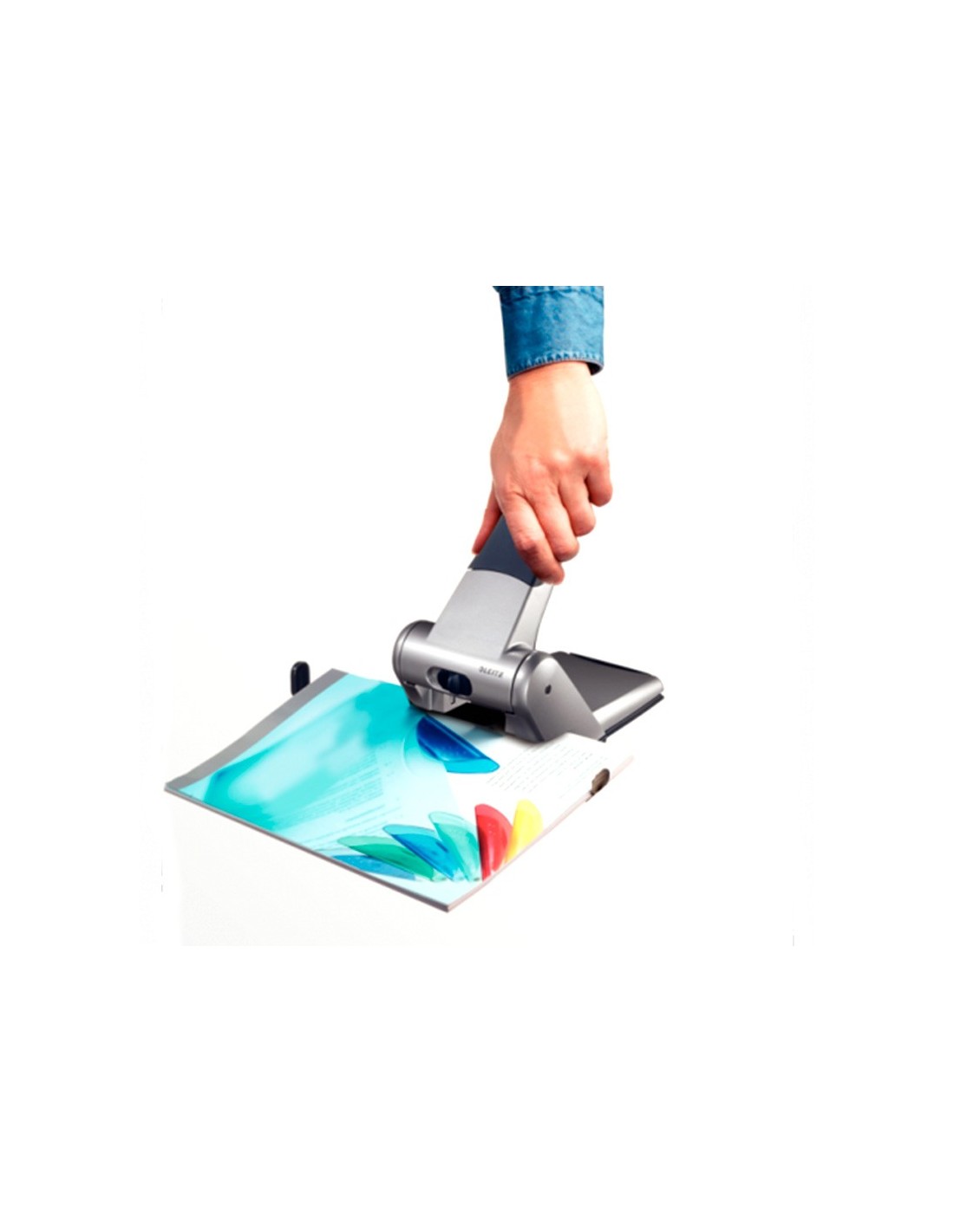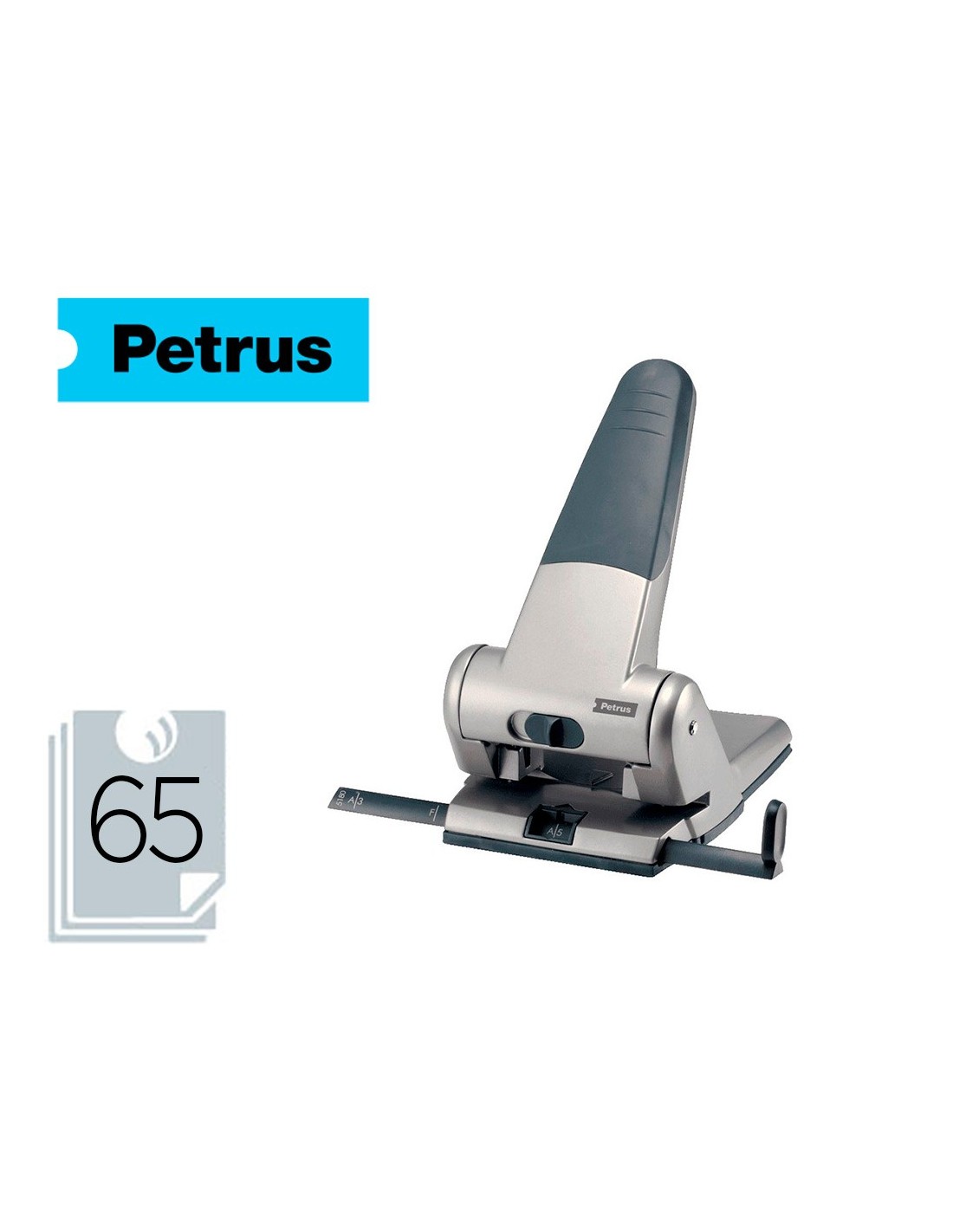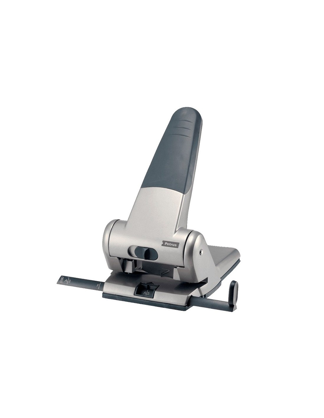 Taladro súper resistente para uso en oficina. Con un mango muy adecuado para una perfecta transmisión de la potencia. Sistema de cierre de la tapa horizontal. Regleta con marco metálico, también para formato A3. Hierro fundido.