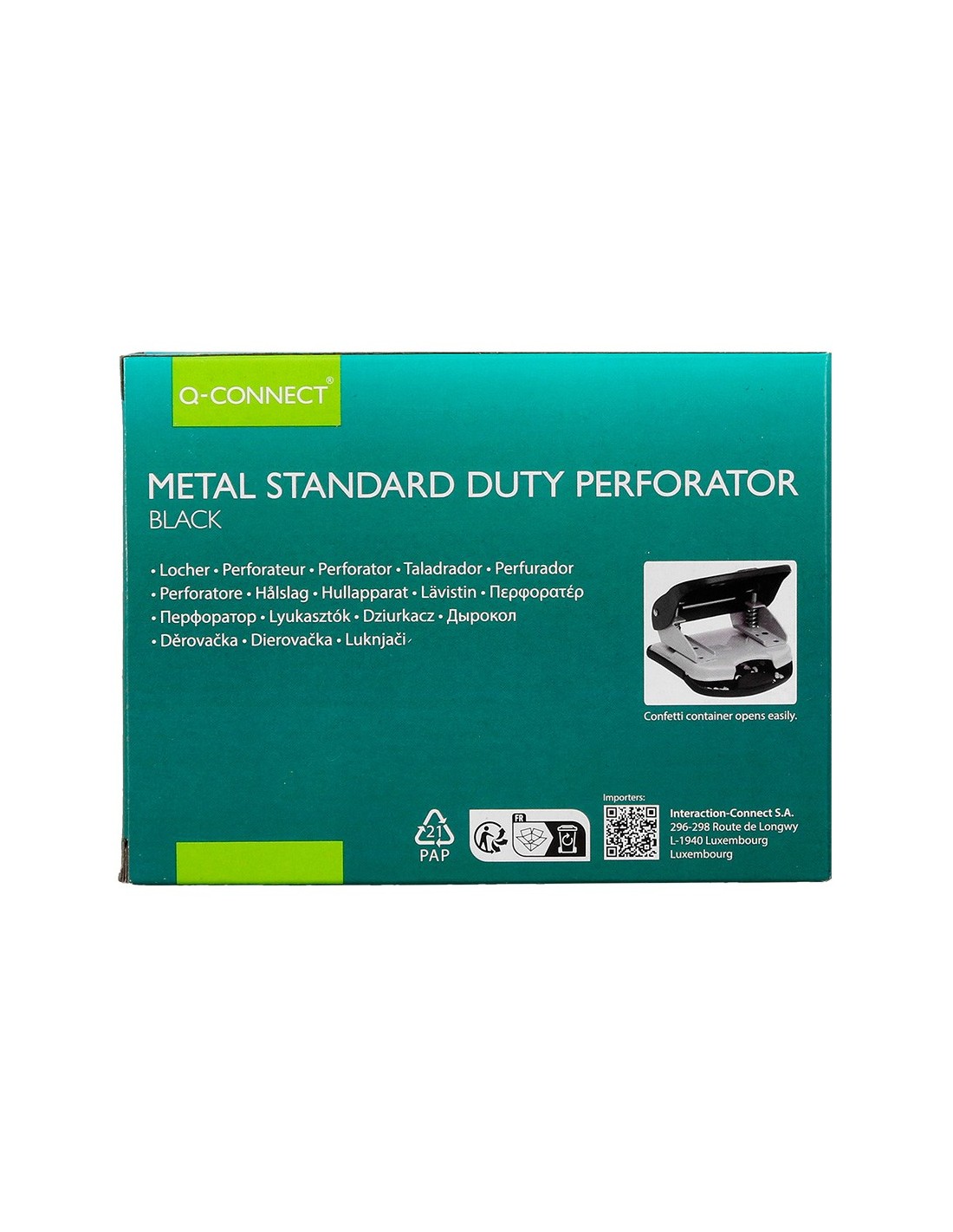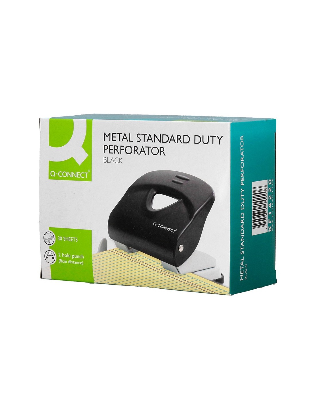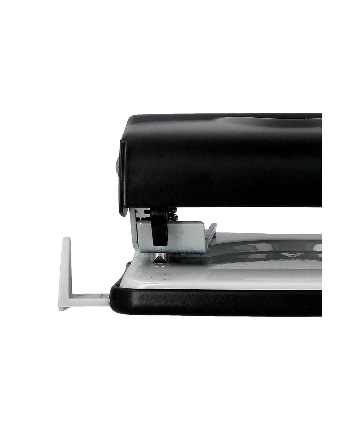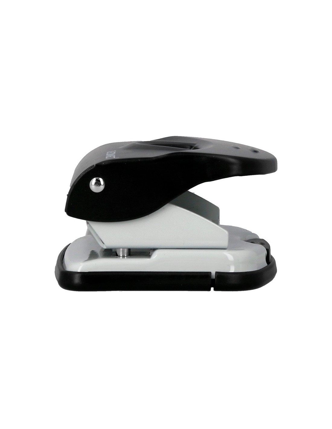 Parte superior de plástico y base metálica, con base antideslizante de plástico. Tiene regleta tope para alinear el papel. Con capacidad para taladrar 30 hojas. Abertura de 3 mm. Color negro. Medidas de la base: 127 x 81 mm. Color negro.