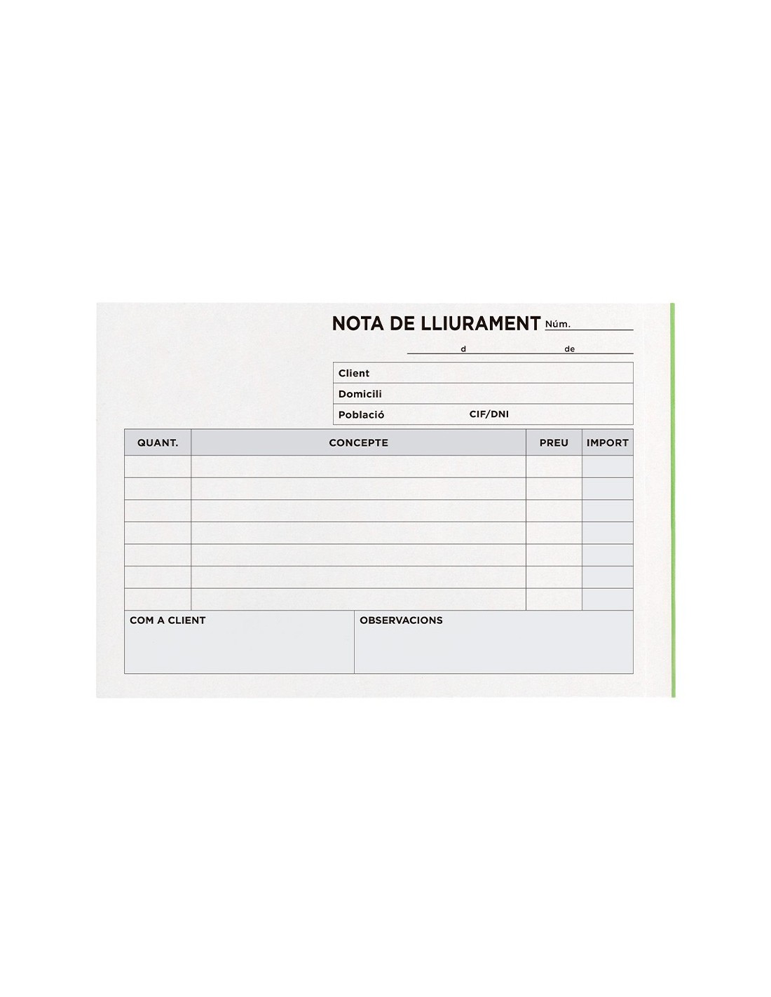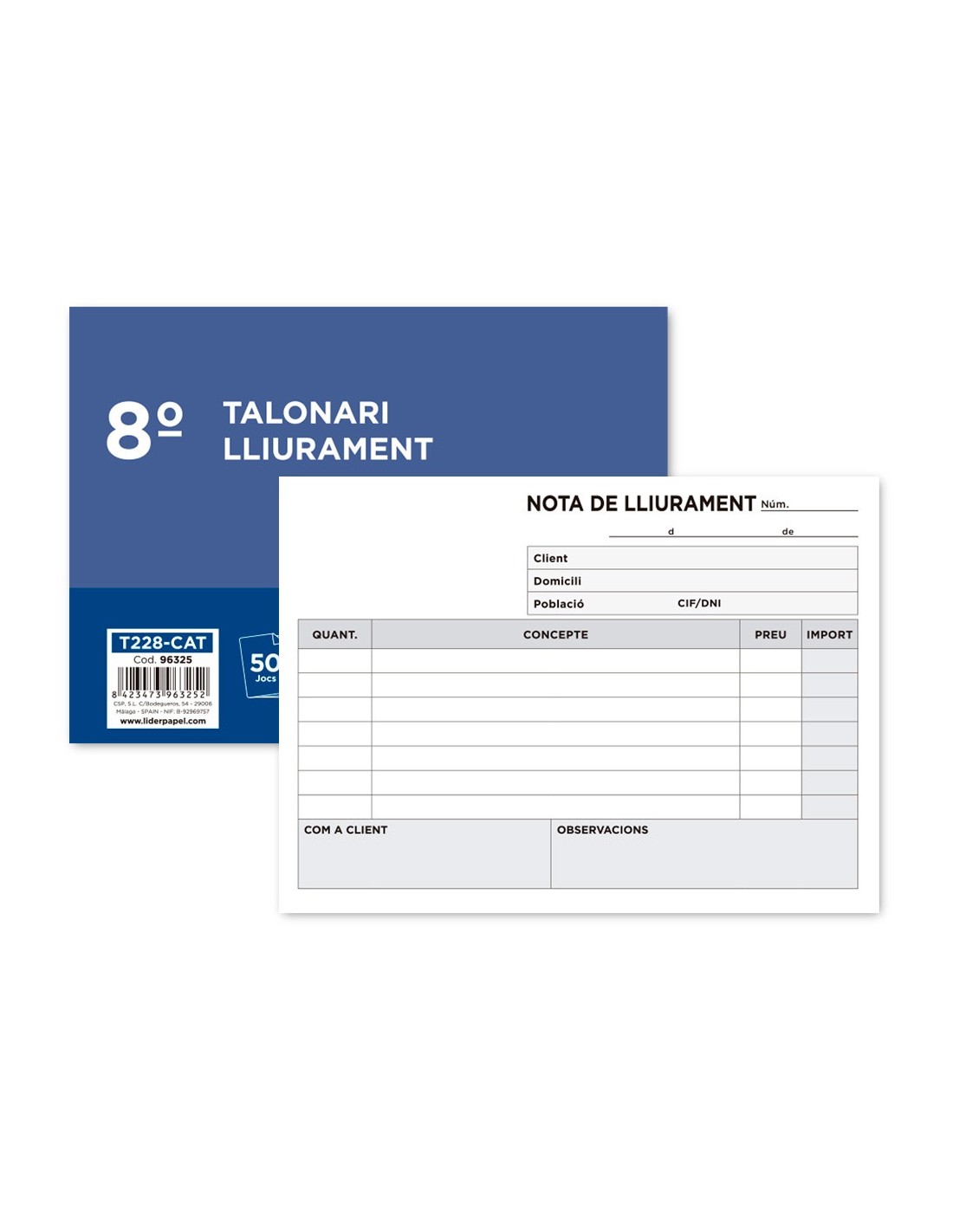 TALONARIO ENTREGAS OCTAVO APAISADO 228-CAT TEXTO EN CATALAN