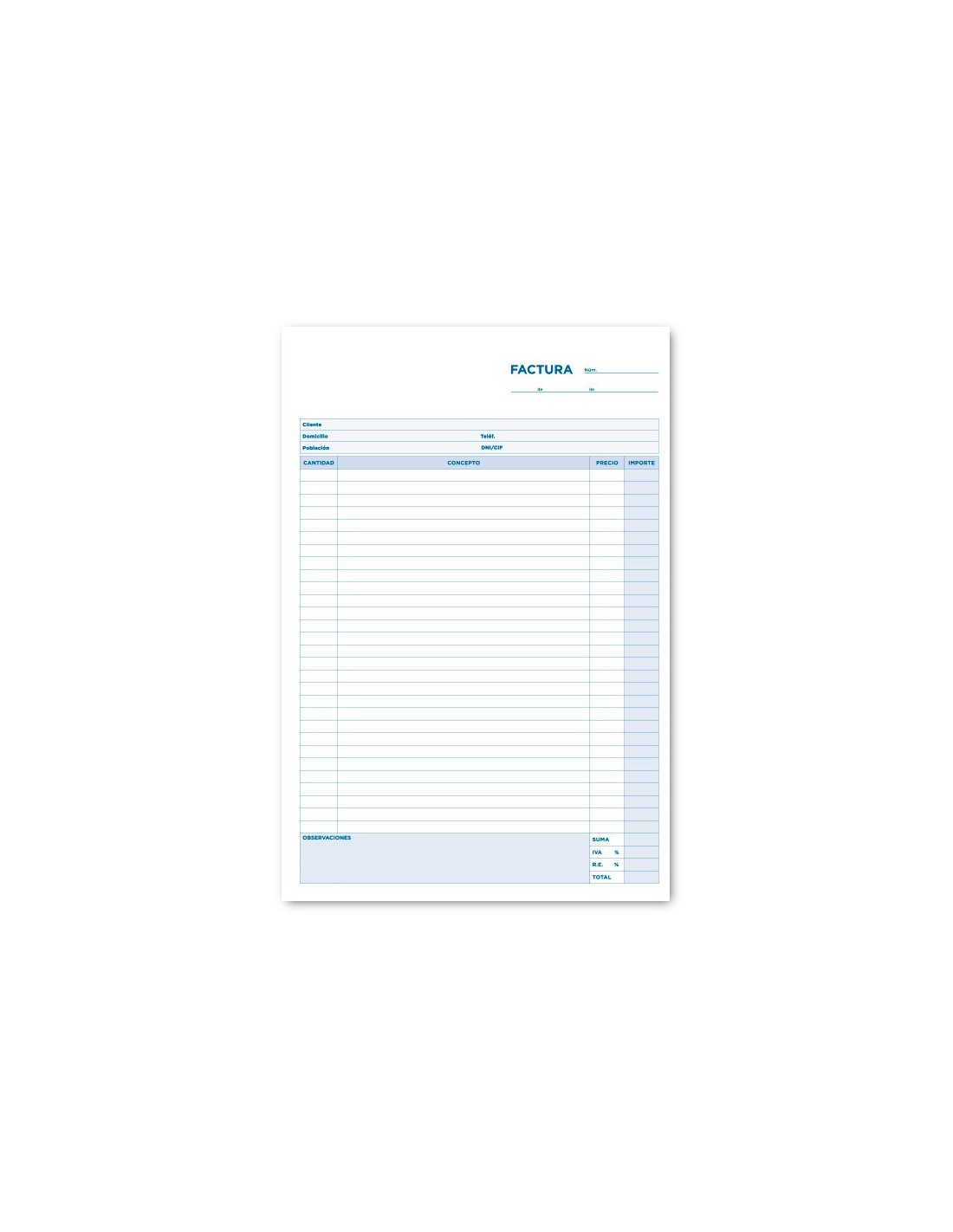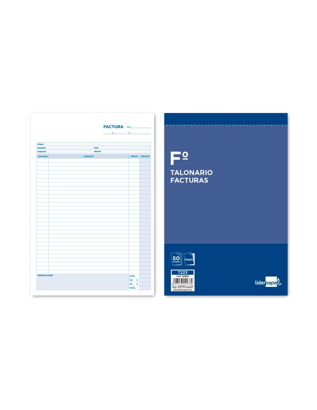 Tamaño folio natural (210 x 315 mm). Original y copia. Con IVA.