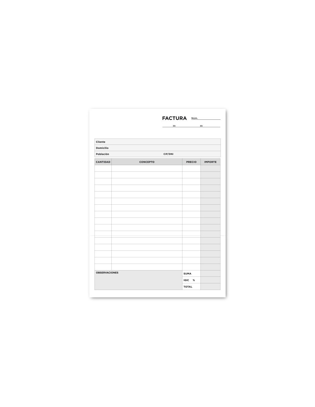 TALONARIO FACTURAS 4º C/IMPUESTO IGIC- 216 DUPLICADO
