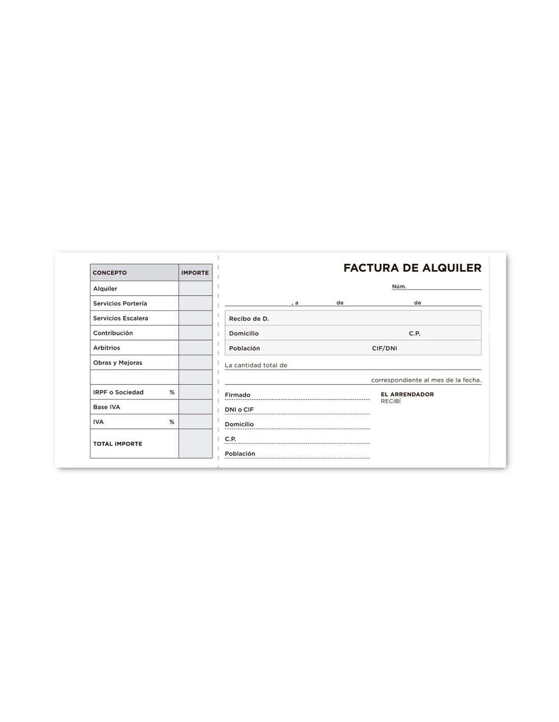 Tamaño 3 en folio apaisado (205 x 102 mm). Con condiciones e IVA.