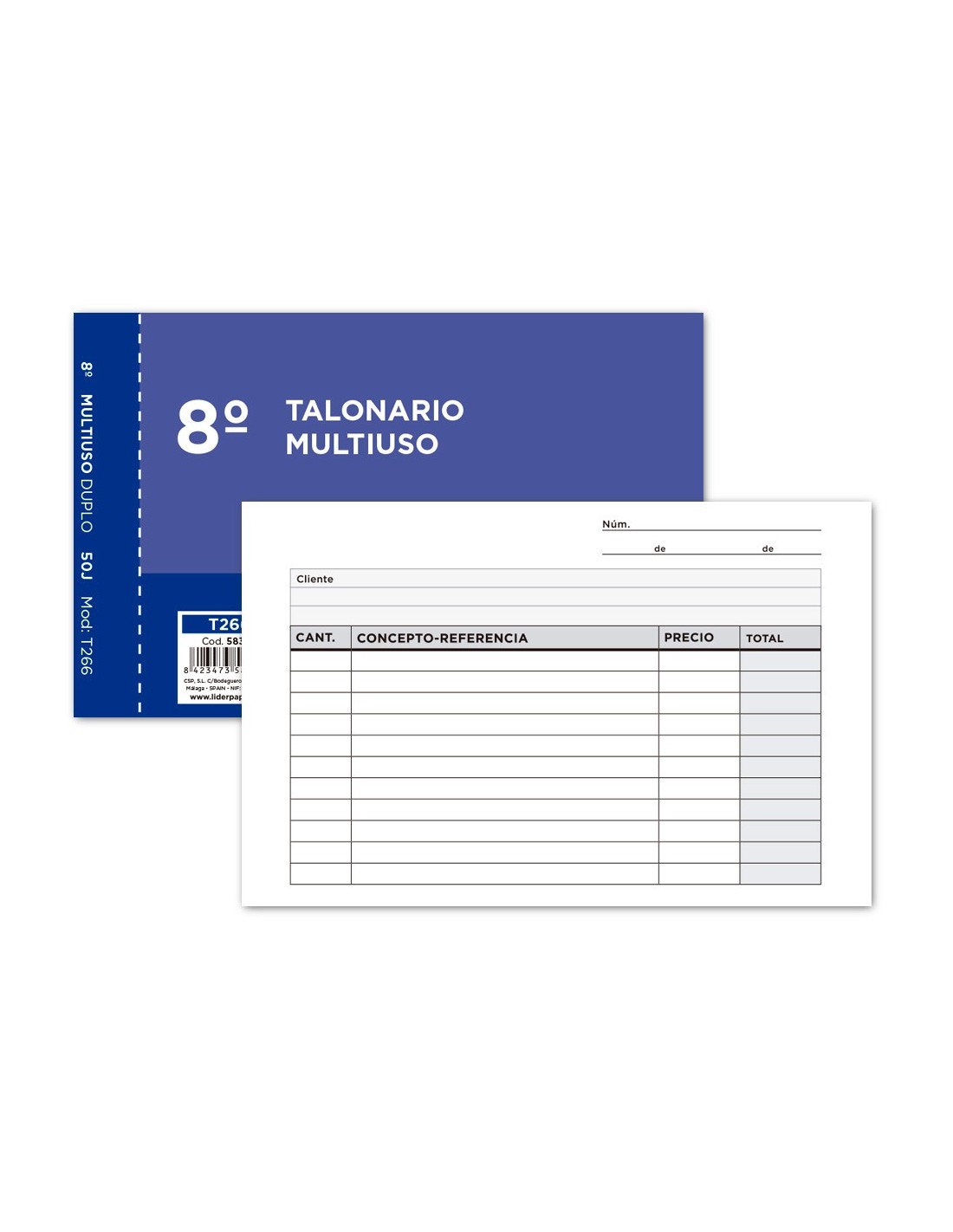 TALONARIO LIDERPAPEL MULTIUSO OCTAVO DUPLICADO APAISADO