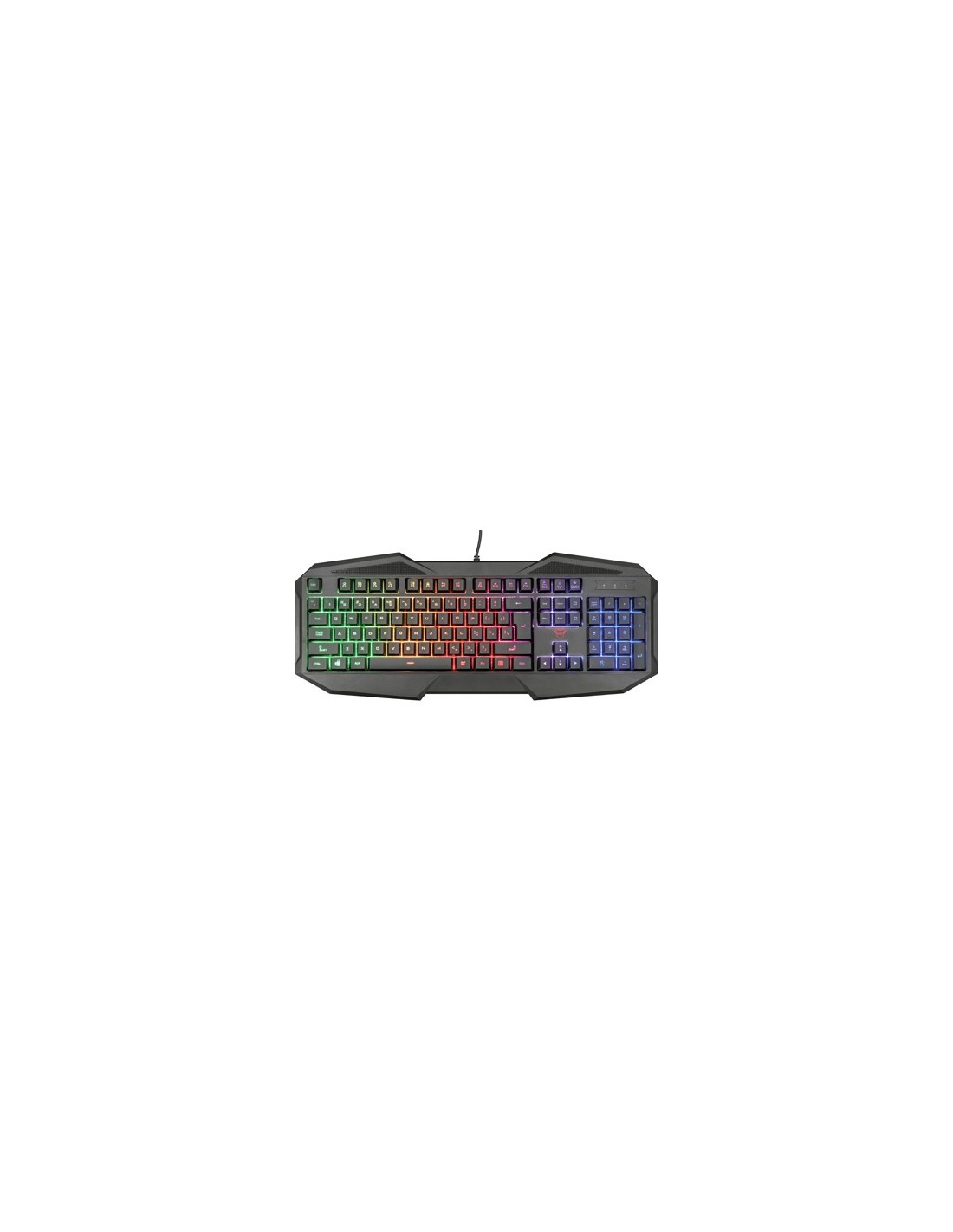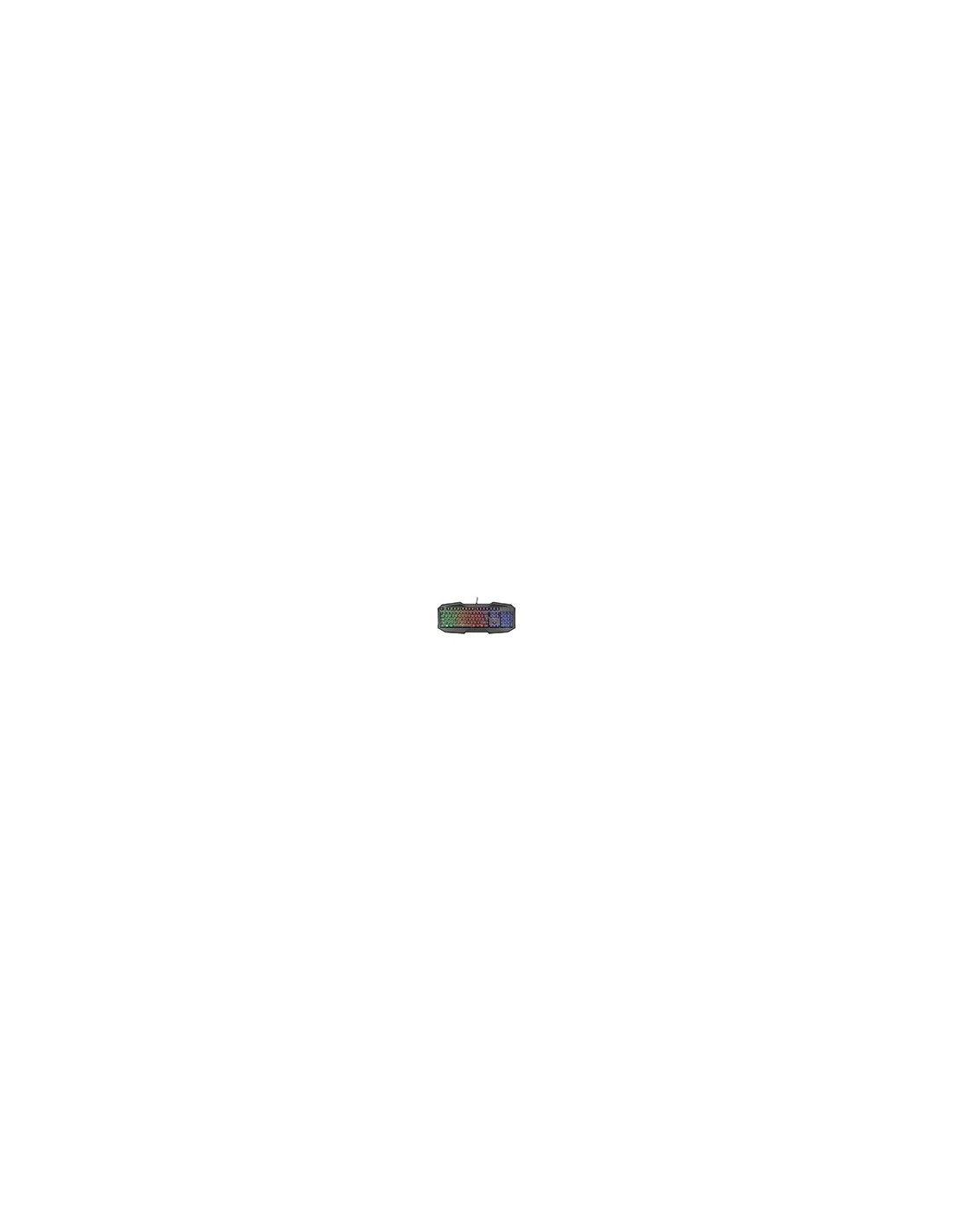Teclado para juegos de tamaño completo, con iluminación Rainbow Wave y 12 teclas multimedia. Sin efecto fantasma: hasta 6 pulsaciones de teclas simultáneas. 12 teclas multimedia de acceso directo. Interruptor de modo de juego, desactive la tecla de Windows directamente. Teclado de membrana con cable de 140 cm. Medidas: 460 x 32 x 191 mm.