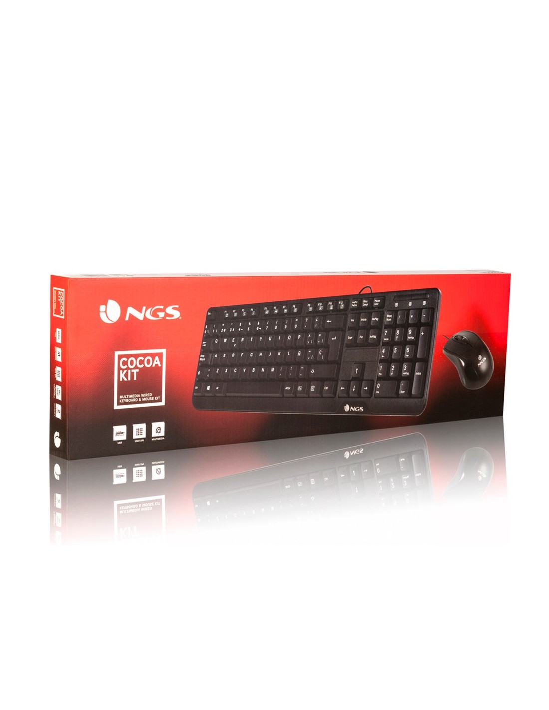 Conjunto de teclado y ratón con cable que destaca por su funcionalidad, sus características técnicas facilitarán a los usuarios las tareas informáticas cotidianas. El teclado cuenta con un diseño de líneas redondeadas, de color negro que le aporta un toque elegante. Además el imperceptible ruido que producen sus teclas al ser pulsadas, hace de este dispositivo un agradable y cómodo complemento para el ordenador. Cuenta con 12 teclas multimedia cuyo objetivo es agilizar las funciones del usuario, de las que destacamos: acceso directo al navegador de Internet, modo reposo del ordenador, control de volumen y modo silencio. Resistente a los derrames. Su ratón está equipado con un sensor óptico de 1000 dpi para mayor rapidez de respuepuesta y alta precisión. Incluye scroll antideslizante y está indicado tanto para usuarios diestros como para zurdos. NGS Cocoa Kit incorpora función Plug & Play con lo que la conexión a cualquier equipo se realizará de foata mediante su conexión USB