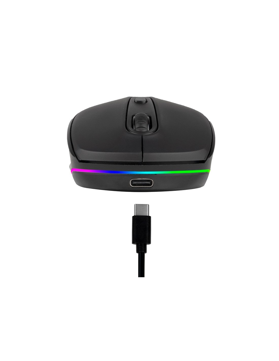 Ratón inalámbrico recargable con tecnología Bluetooth para varios dispositivos. 2,4 GHz + BT3.0 + BT5.0, compatible con 3 dispositivos a la vez. Canal para USB de 2,4 GHz con una conexión potente y fiable. Equipado con una batería de litio recargable, fácil de cargar con el cable USB de tipo C incluido. Incluye una rueda de desplazamiento de goma antideslizante con un diseño óptimo de deslizamiento y 3 botones. Clic silencioso. Dispone de retroiluminación RGB personalizable con 15 colores. Ambidiestro. Alcance inalámbrico de 8-10 m. Hasta 50 horas de batería en una sola carga. Botón de encendido/apagado de ahorro de energía.