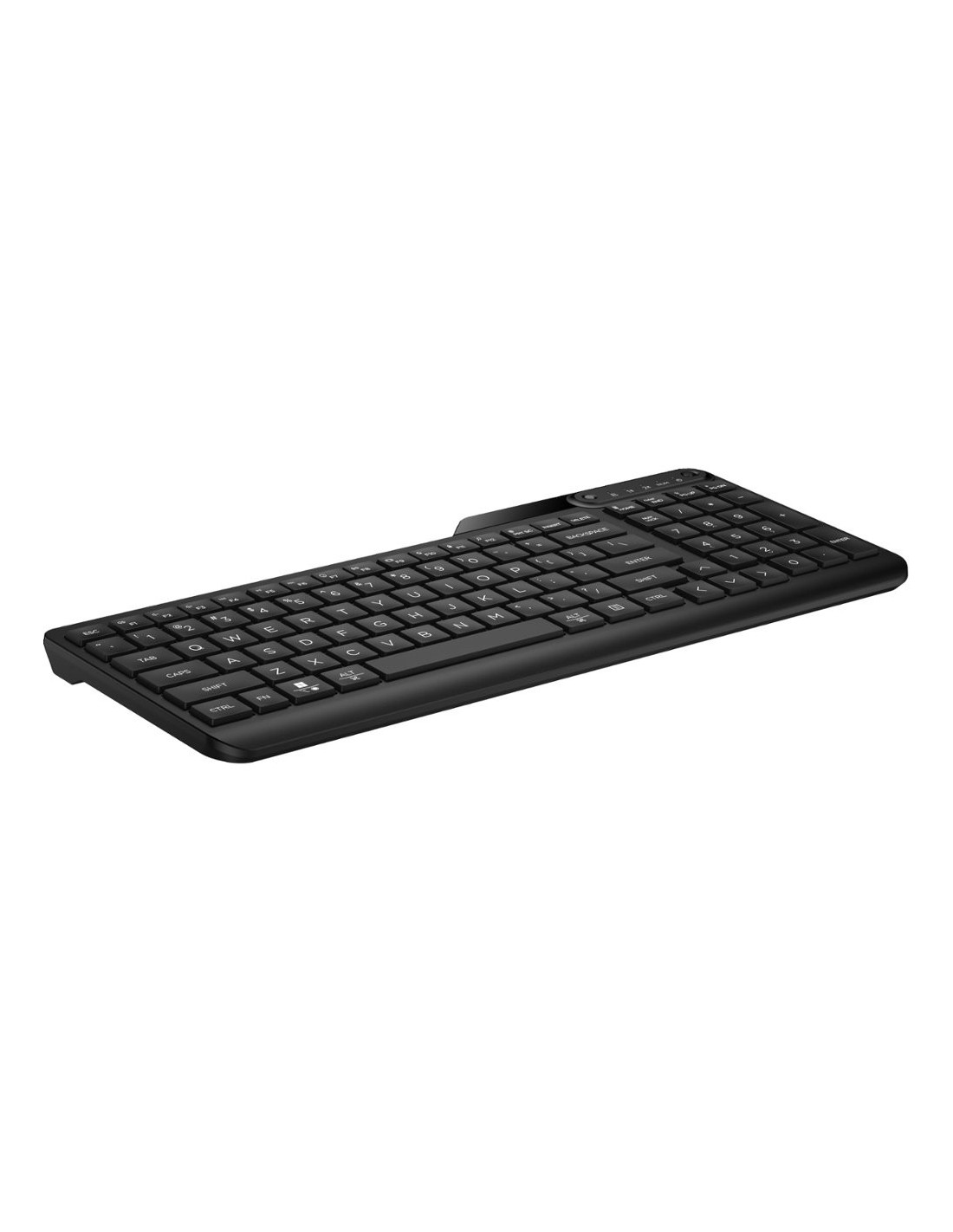 La portabilidad se une a la productividad. Realiza tu jornada laboral en cualquier lugar. Este teclado ajustable, resistente a derrames y desinfectable adapta la experiencia completa del teclado en un diseño compacto y fácil de transportar que ahorra espacio en su escritorio y en su bolso. Agregue utilidad y comodidad a su jornada laboral con un teclado numérico completo, teclas direccionales y teclas cóncavas que hacen que escribir sea silencioso y cómodo. Conectividad sin complicaciones. La vida es mejor cuando tienes opciones. La funcionalidad de modo dual le ofrece dos formas sencillas de permanecer conectado en todos sus dispositivos. Conecte de forma segura hasta ocho dispositivos compatibles con un único dongle HP Unifyinging cifrado, o cambie entre hasta tres dispositivos con solo presionar un botón. Crea tu nueva clave favorita. Un poco de flexibilidad ayuda mucho. Programe las teclas F1 - F12 para que actúen como atajos personalizados o combinaciones de teclas difíciles par