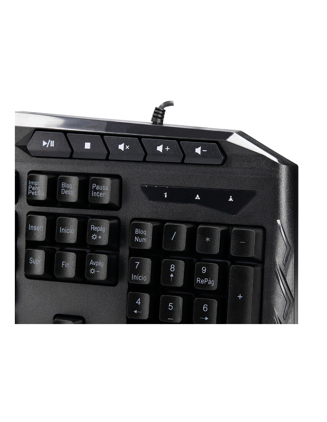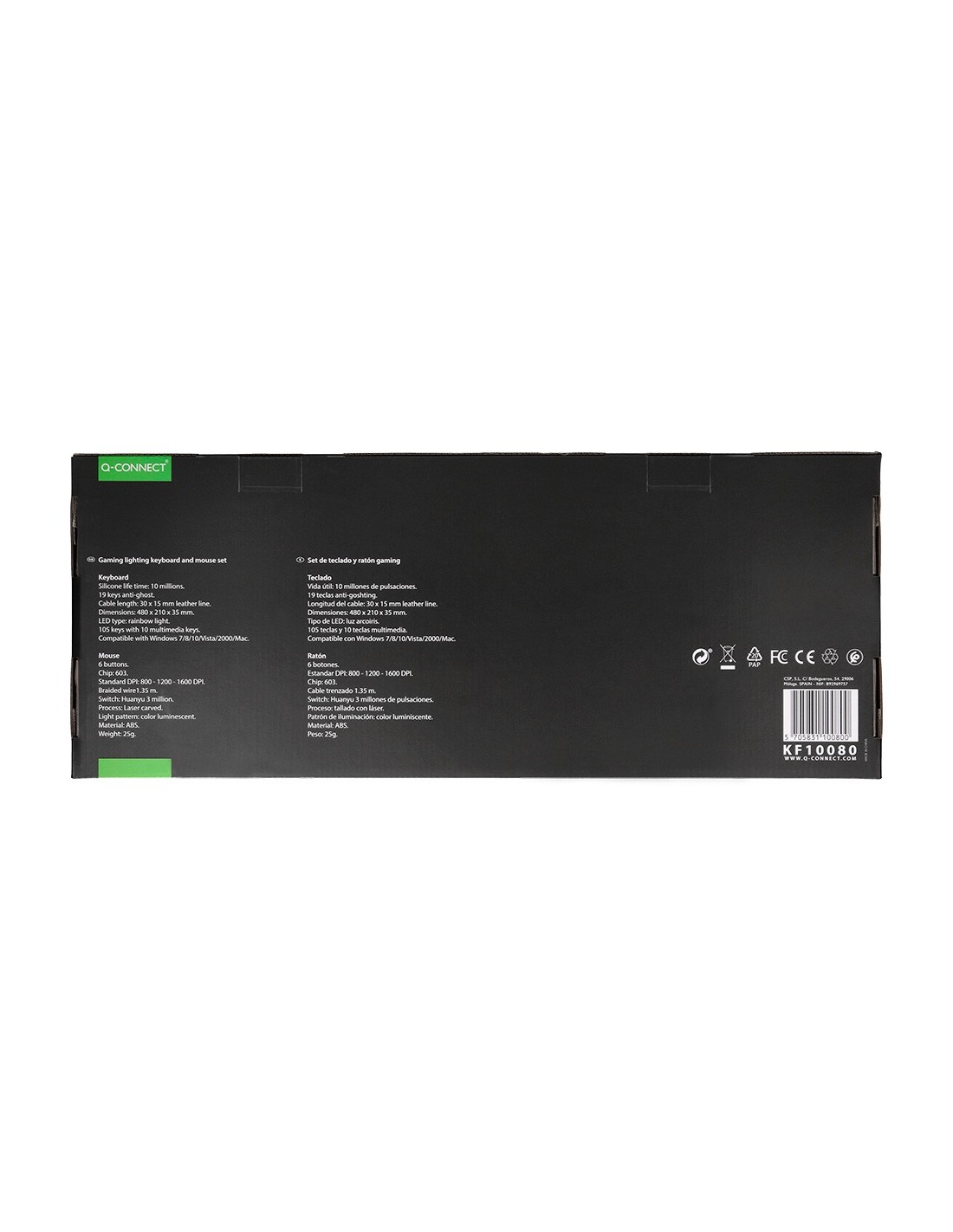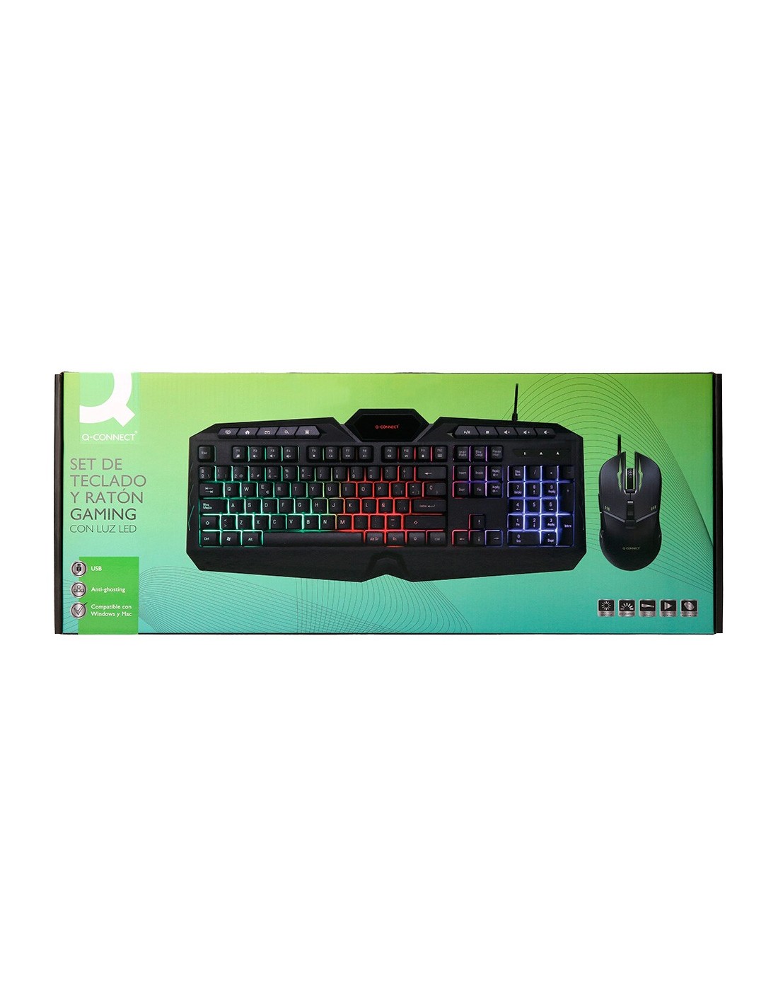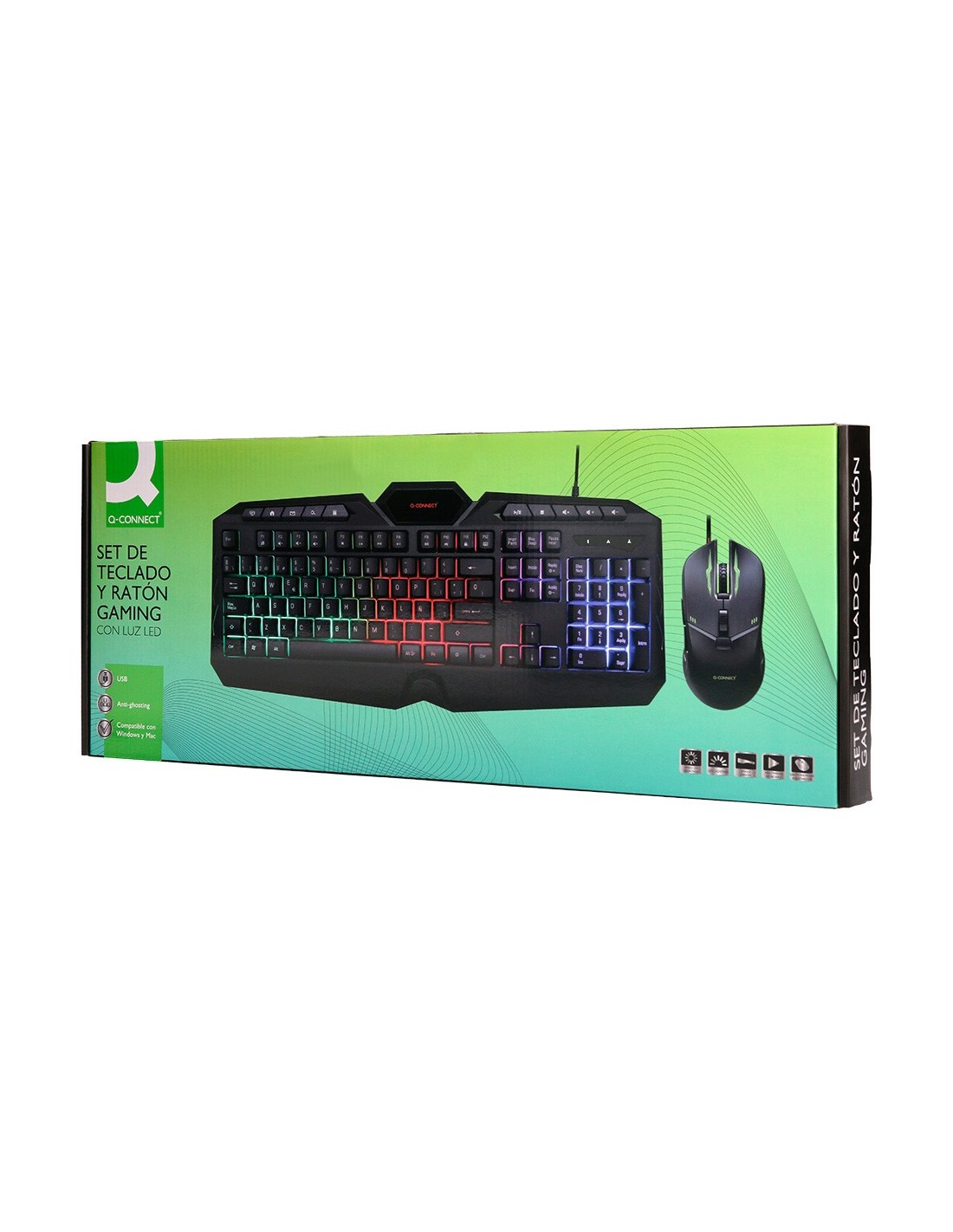 Set gaming 2 en 1 con teclado y ratón. Ideal para todos tipo de jugadores.Teclado gaming retroiluminado con 105 teclas, sensible, preciso y rápido. Cuenta además con 19 teclas anti ghosting para evitar conflictos y accion es no deseadas, y 10 teclas multimedia. Luz LED de fondo arco iris. Medidas del teclado: 48 x 21 x 3,5 cm. Ratón gaming retroiluminado con 6 botones. Sensor óptico sensible y de alta precisión, excelente para todo tipo de juego. Sensibilidad ajustable de 1200/1800/2400/3600 DPI. Cable trenzado resistente y duradero de 1,35 m. Diseño ergonómico que permite un agarre cómodo para todos los tamaños de manos. Diseño ligero de 25 g.