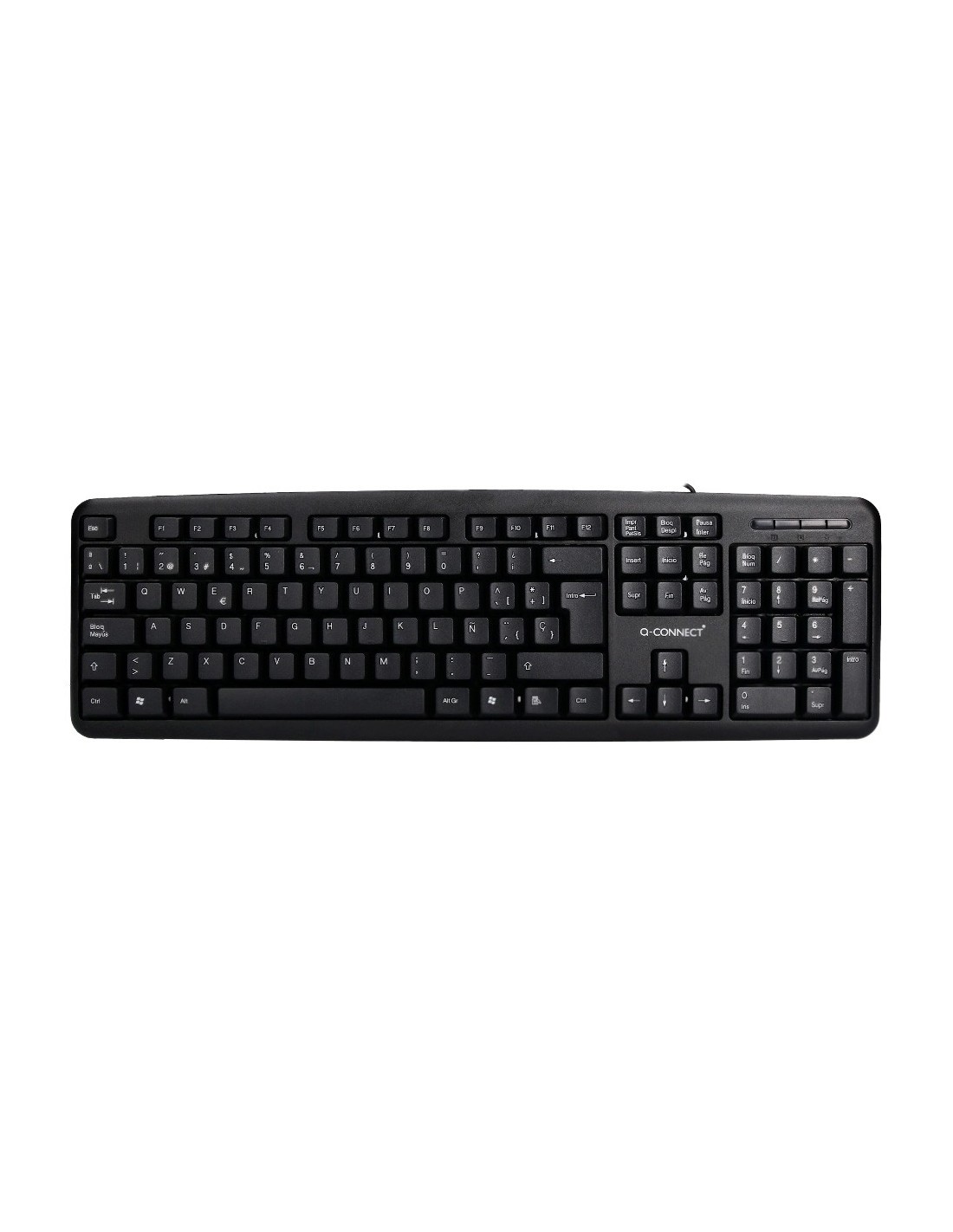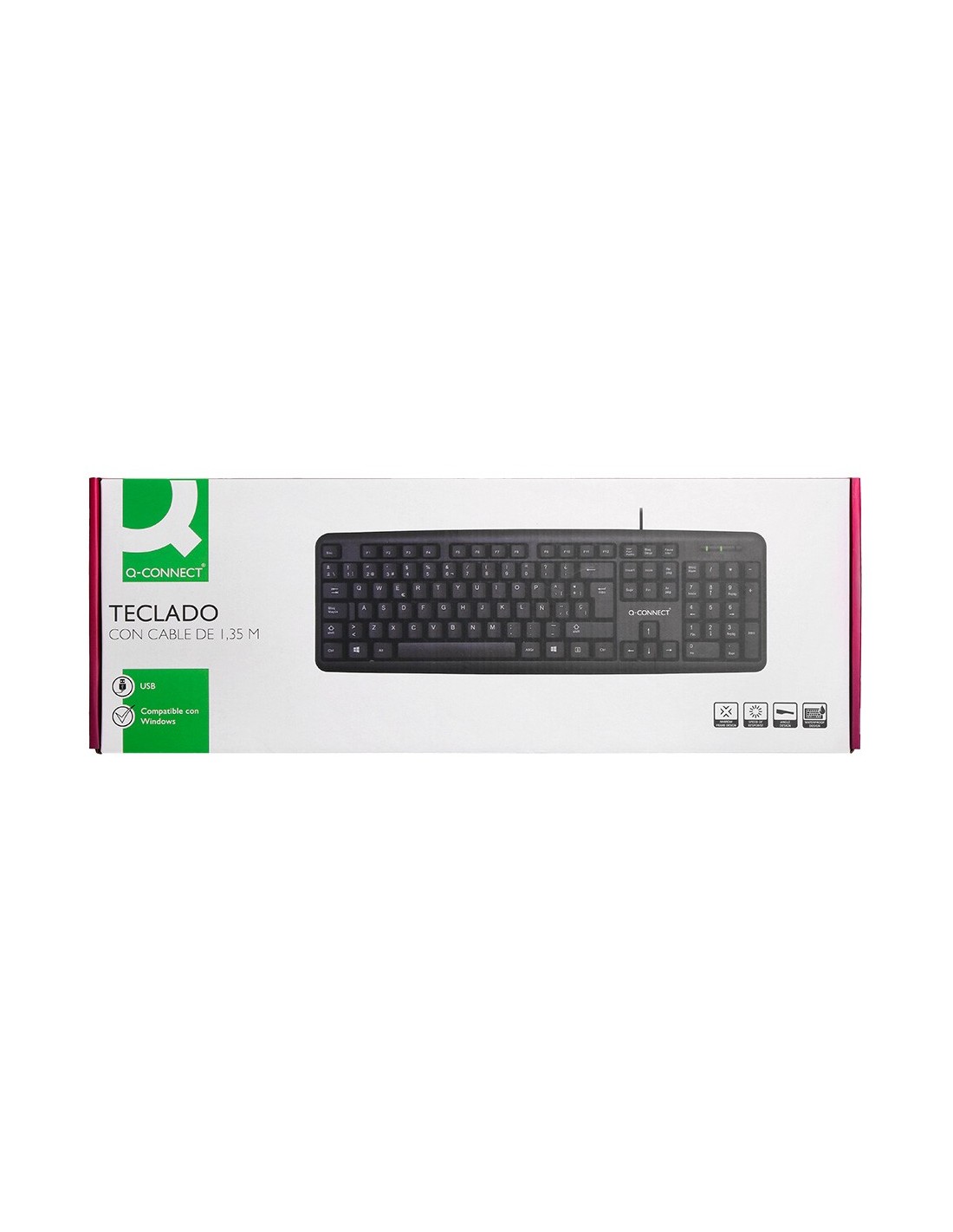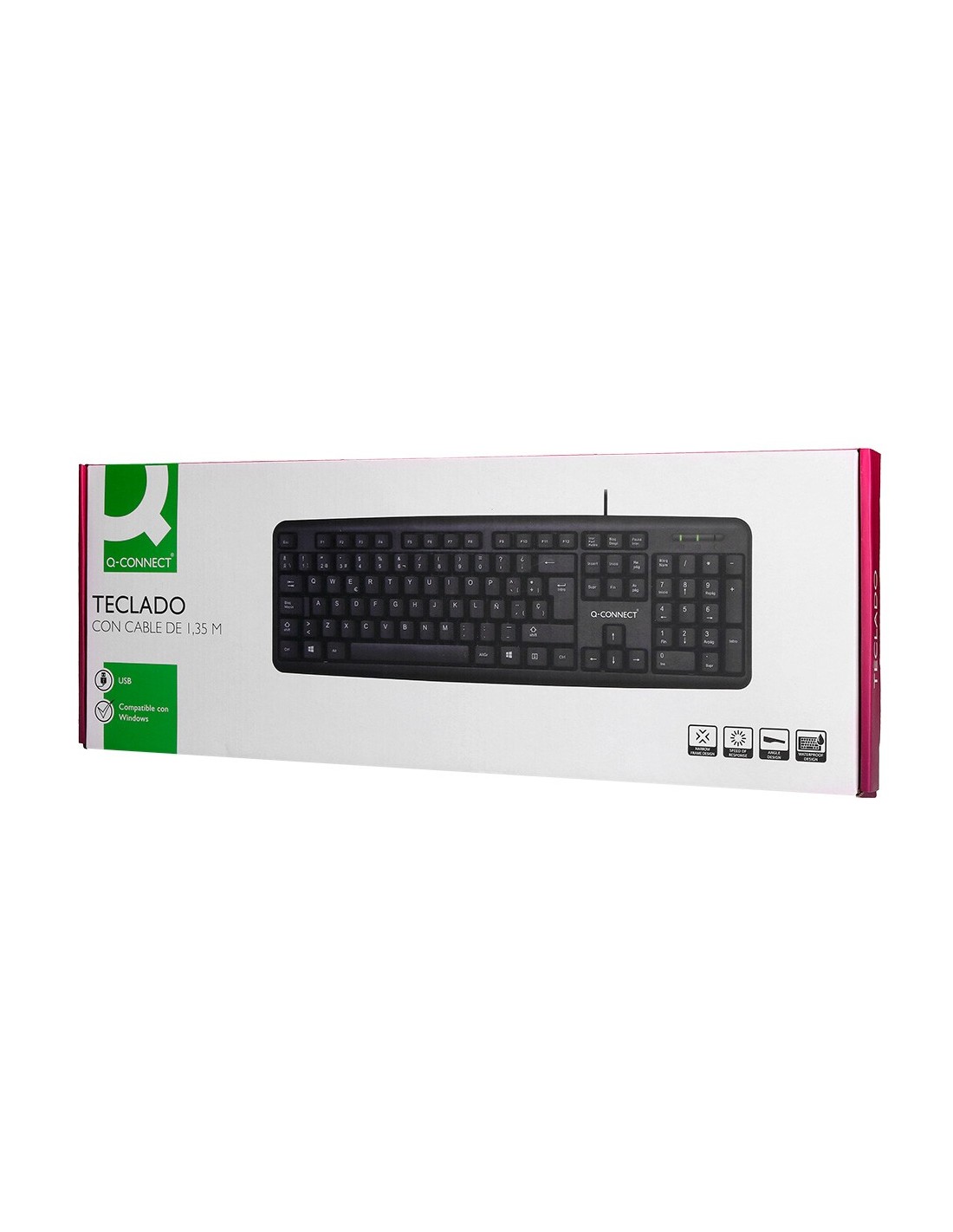 Teclado estándar con cable de 1,35 m y 105 teclas. Su conector USB permiteuna instalación sencilla en su ordenador y una rápida capacidad de respue sta. Compatible con WINDOWS98 / NT / 2000 / ME / XP / Vista / Windows 7 / Windows 8. Inclinanción ajustable con dos patas tarseras. Diseño sencillo,con bordes estrechos y resistente a salpicaduras. Garantiza un agarre cóm odo y natural. Elaborado con materiales de calidad que aportan una mayor durabilidad. Medidas: 20 x 135 x 448 mm.