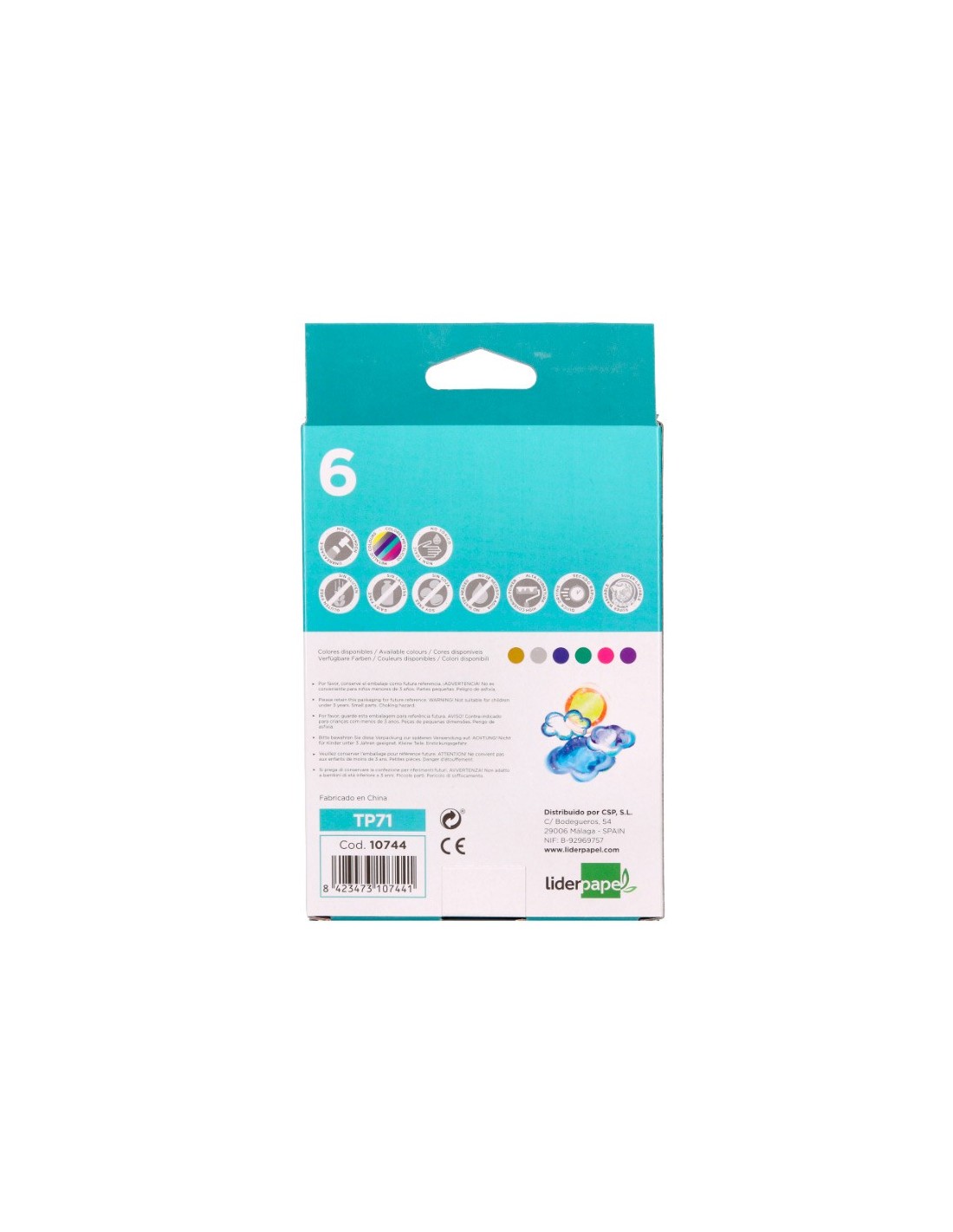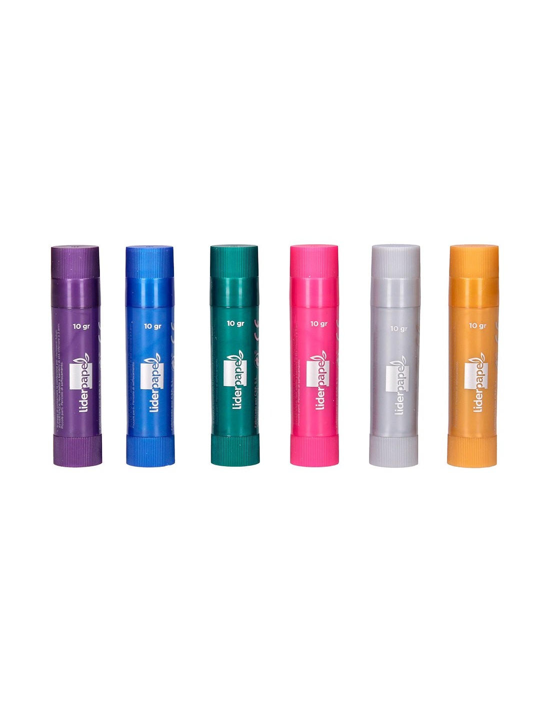 Témperas sólidas de aplicación directa sin necesidad de añadir agua. Barras resistentes de 10 g. Para pintar sobre papel, cartulina, madera, cartón, etc. No arruga el papel, no mancha, lavable. Especial uso escolar. Perfectas para dibujar y pintar de una nueva manera fácil, limpia y divertida. Colores vivos metalizados. Colores surtidos. Presentado en estuche de cartón.