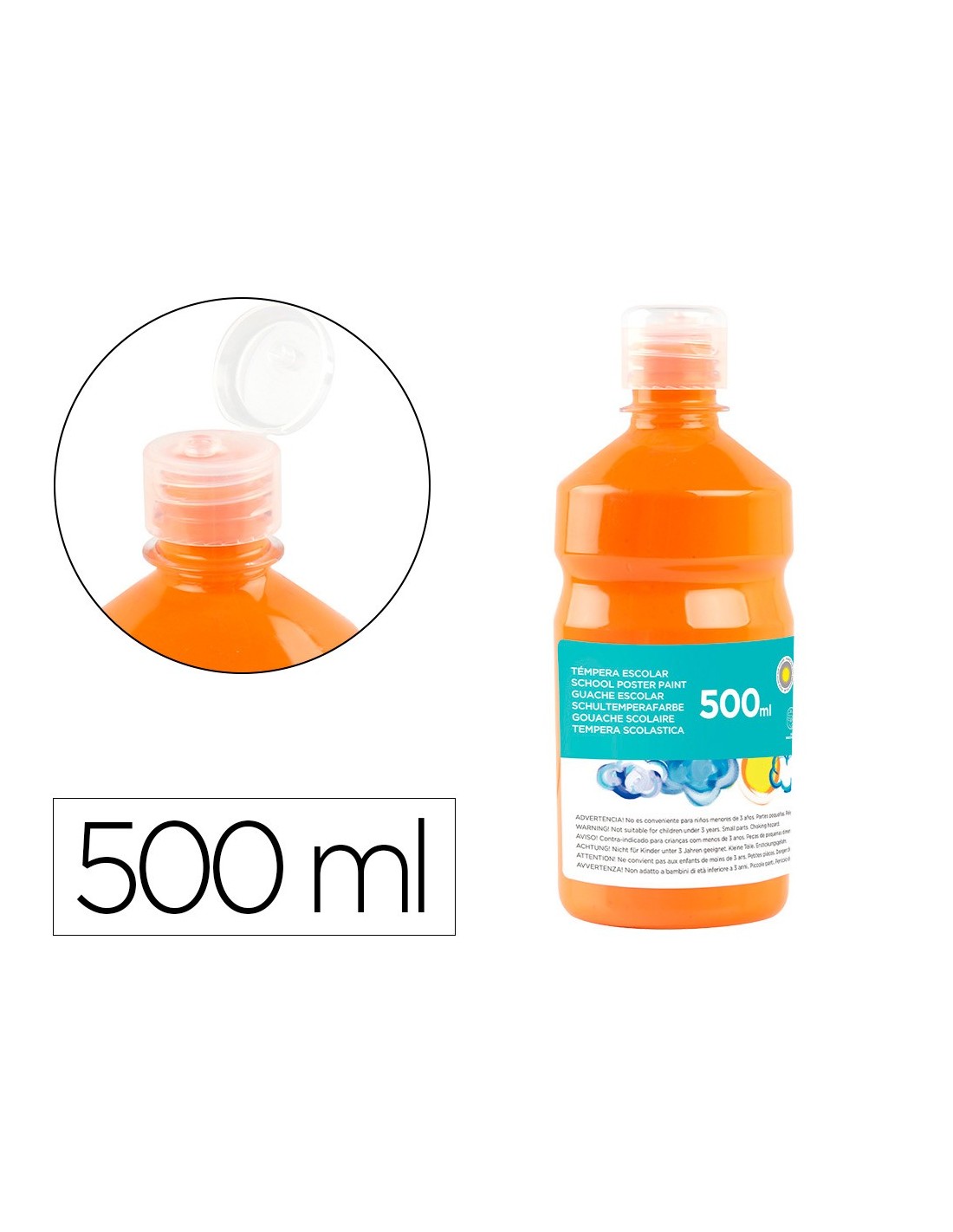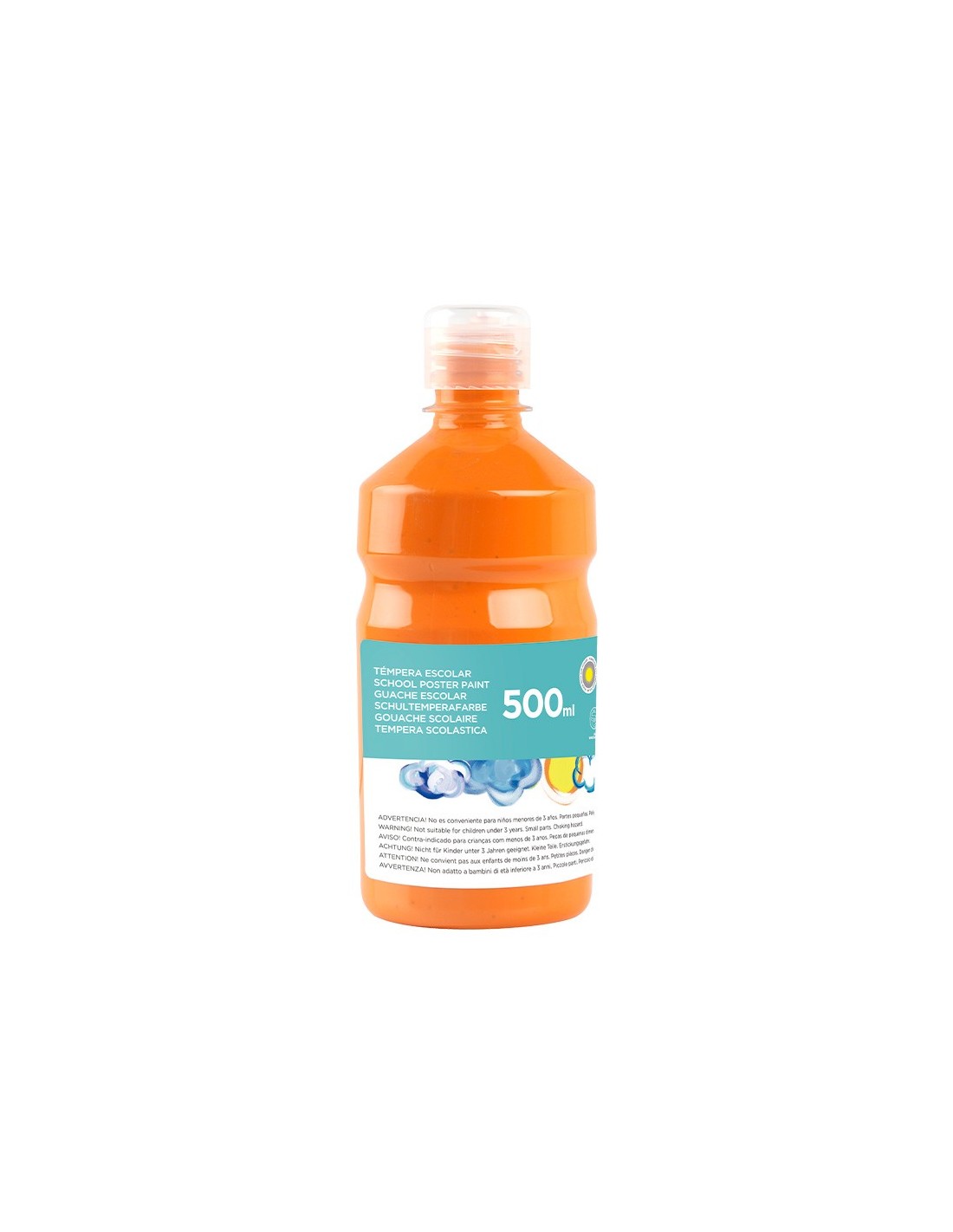 Témpera escolar. Ideal para uso escolar. Adecuada a partir de los 3 años de edad. Superlavable. Con cierre de seguridad. Colores brillantes. La botella de 500 ml.
