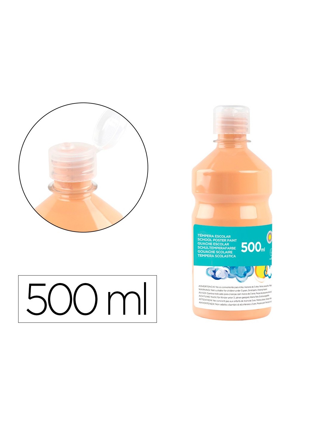 Témpera escolar. Ideal para uso escolar. Adecuada a partir de los 3 años de edad. Superlavable. Con cierre de seguridad. Colores brillantes. La botella de 500 ml.