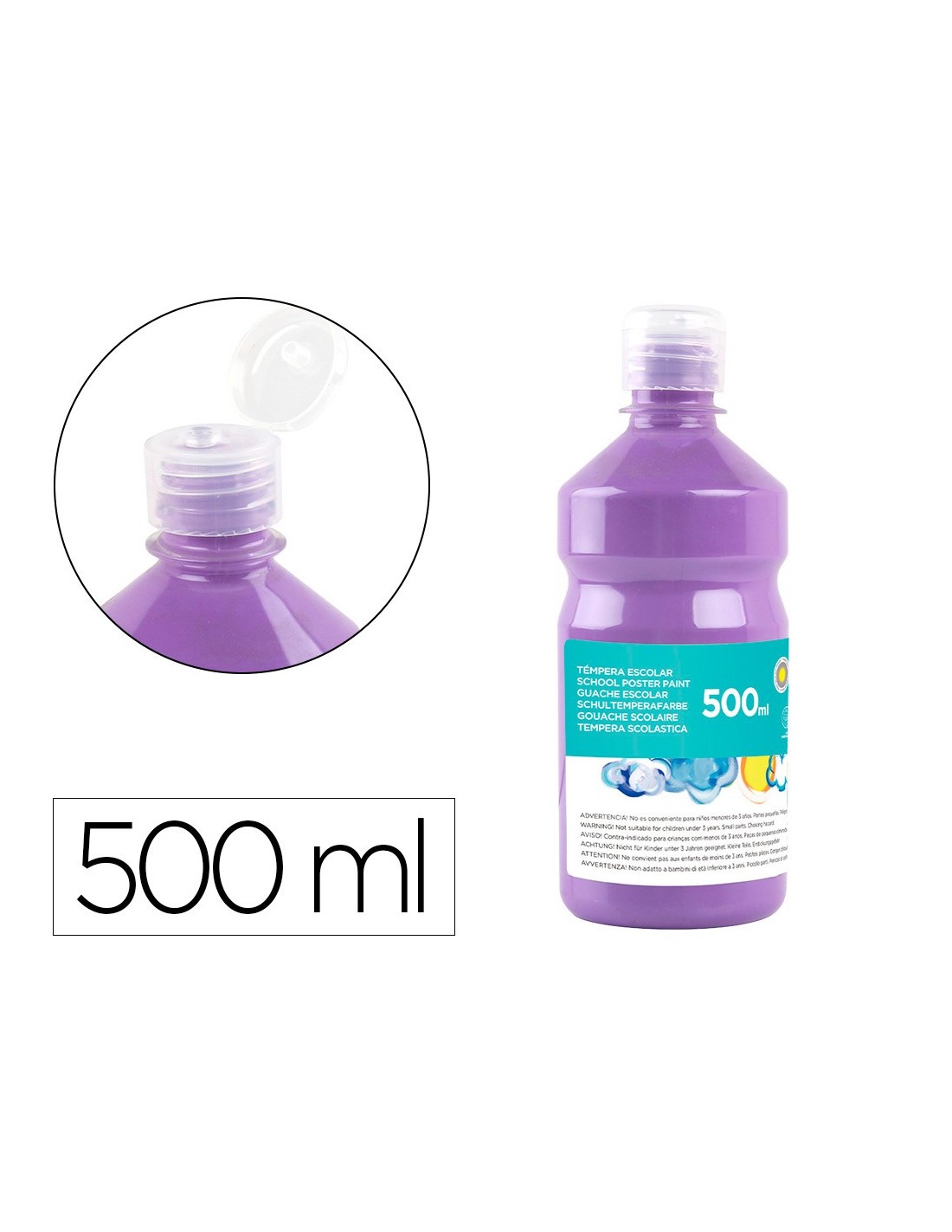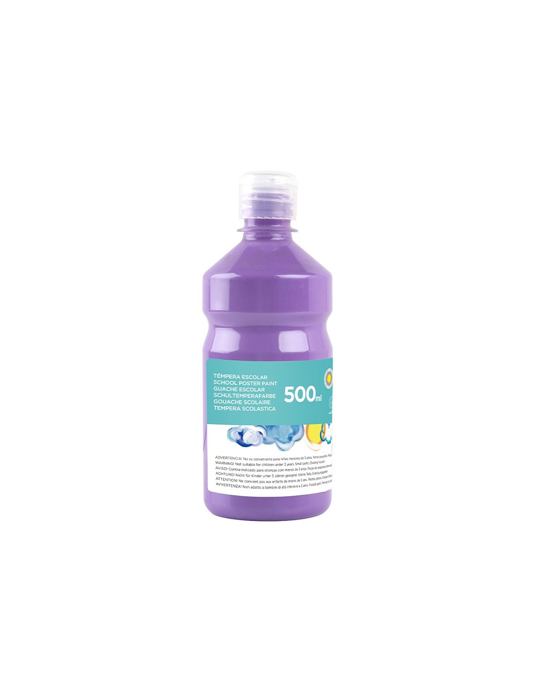 Témpera escolar. Ideal para uso escolar. Adecuada a partir de los 3 años de edad. Superlavable. Con cierre de seguridad. Colores brillantes. La botella de 500 ml.