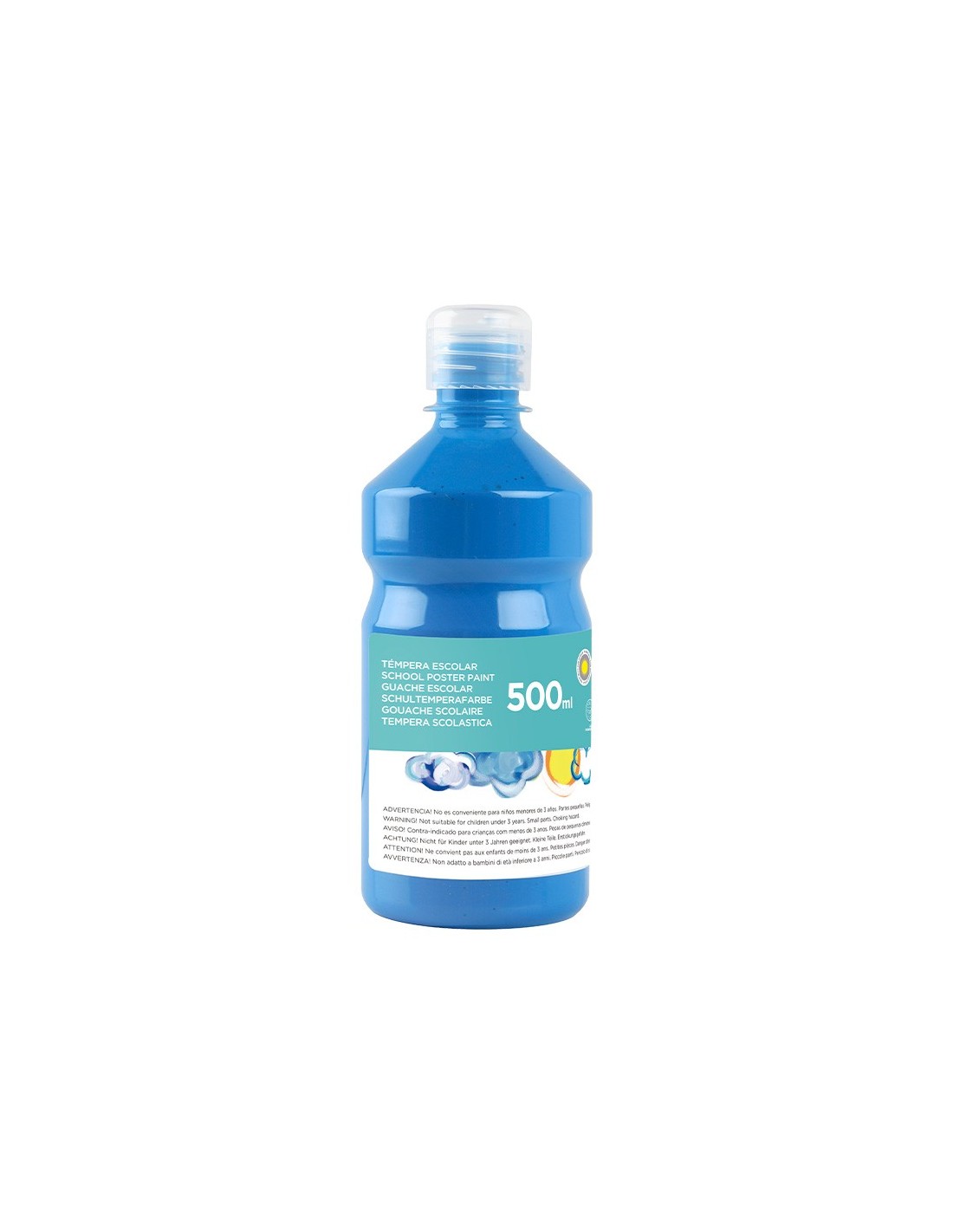 Témpera escolar. Ideal para uso escolar. Adecuada a partir de los 3 años de edad. Superlavable. Con cierre de seguridad. Colores brillantes. La botella de 500 ml.