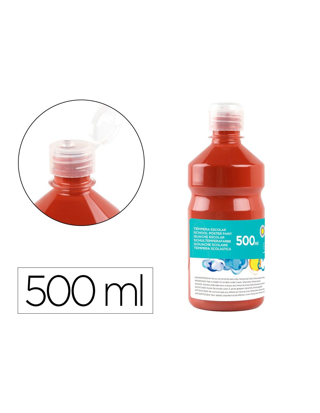 Témpera escolar. Ideal para uso escolar. Adecuada a partir de los 3 años de edad. Superlavable. Con cierre de seguridad. Colores brillantes. La botella de 500 ml.