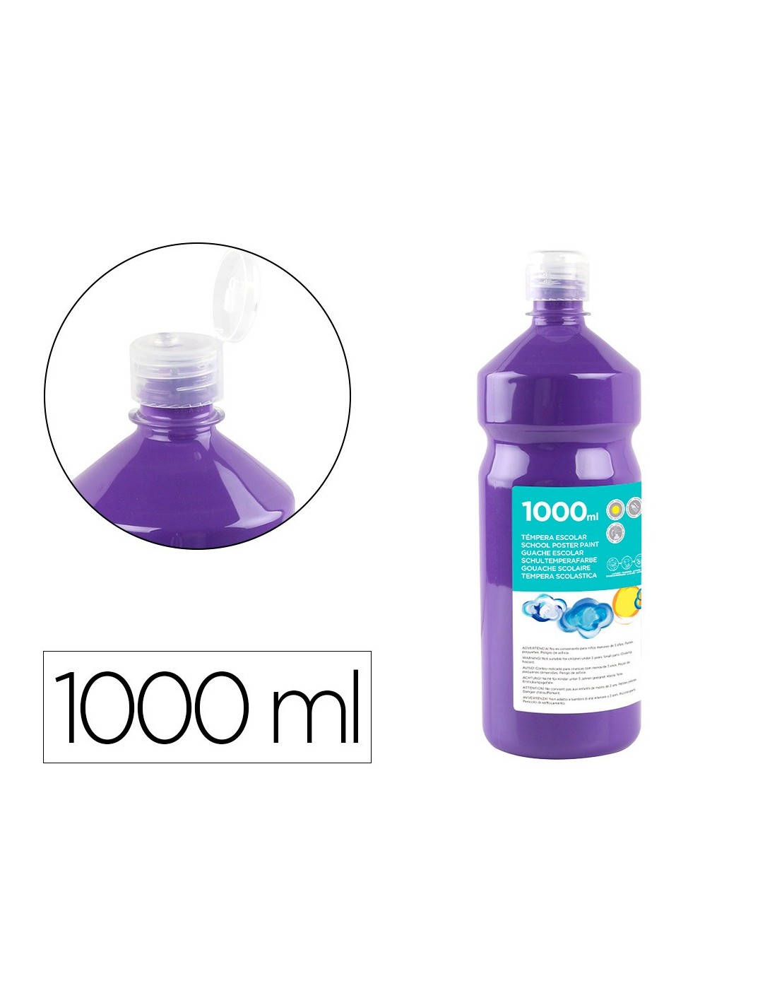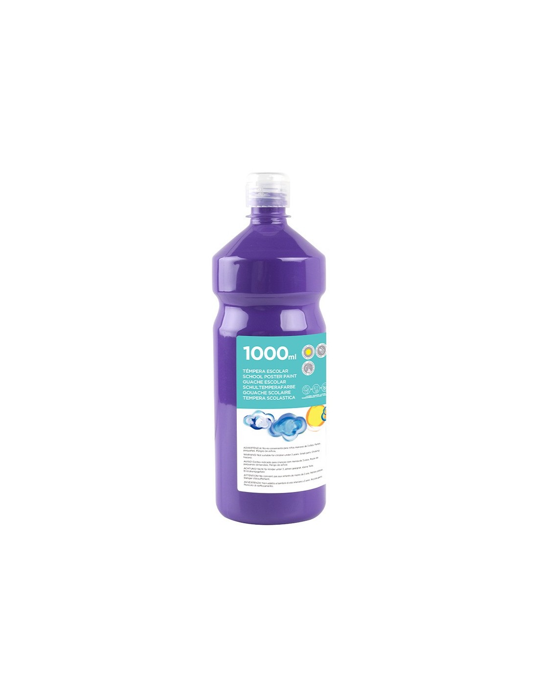 Témpera escolar lista para usar. Ideal para uso escolar. Adecuada a partir de los 3 años de edad. Superlavable. Con cierre de seguridad. Colores brillantes. La botella de 1000 ml.